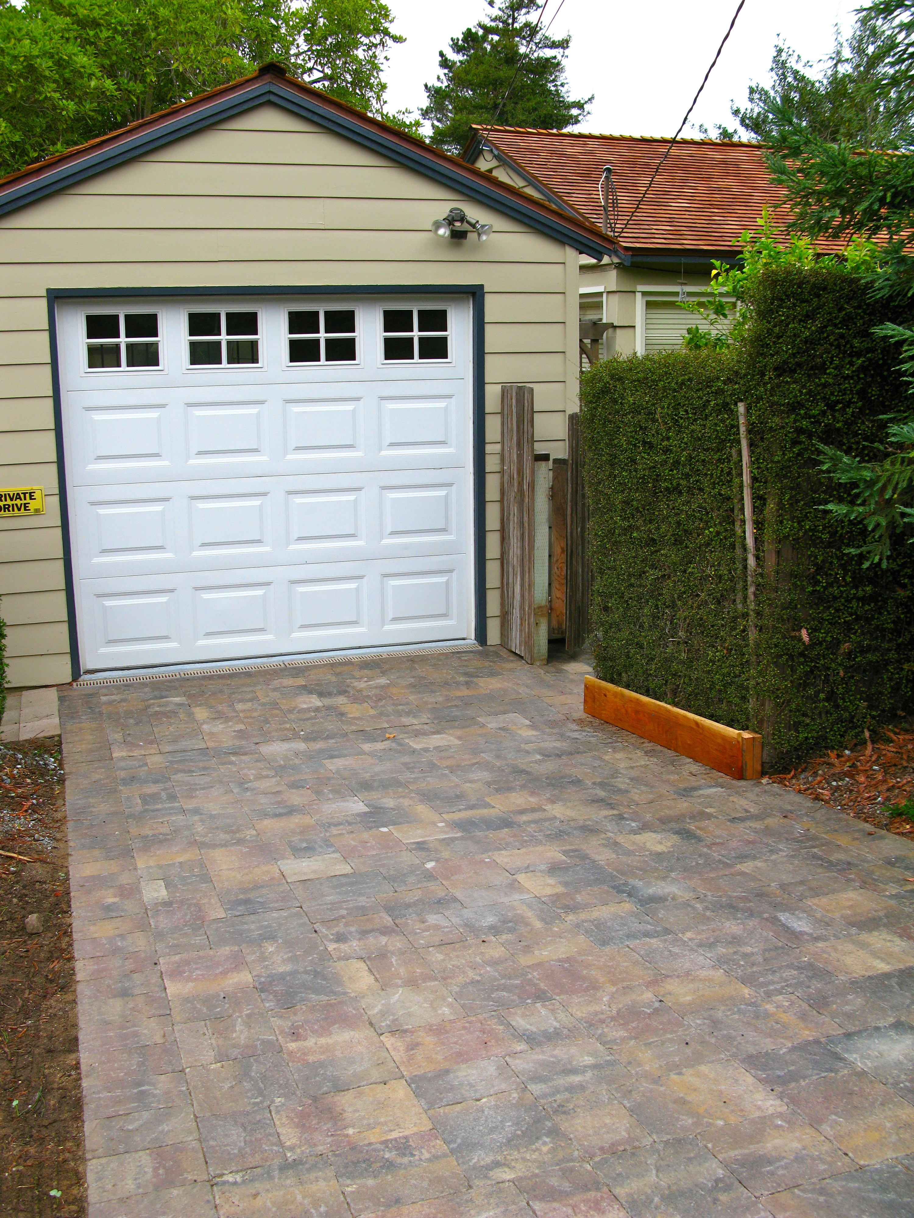 First we tackled that awful yellow garage door and later our driveway. Because we are so close to Ocean Ave. We often found strange cars happily parked in the drive. We put up a PRIVATE DRIVE sign. You can imagine how little that helped.