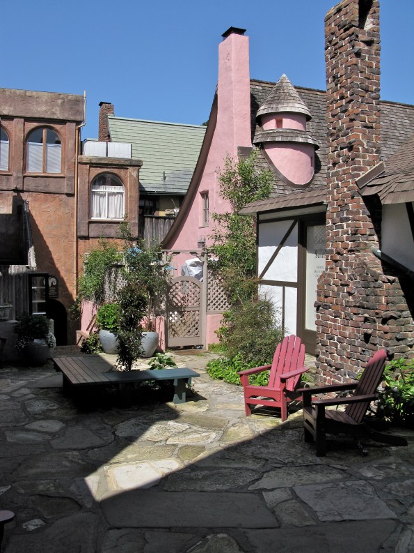 This is hardly one of the hidden courtyards of Carmel, although I suspect few tourists see the complete courtyard. It is a complex mix of unique buildings.