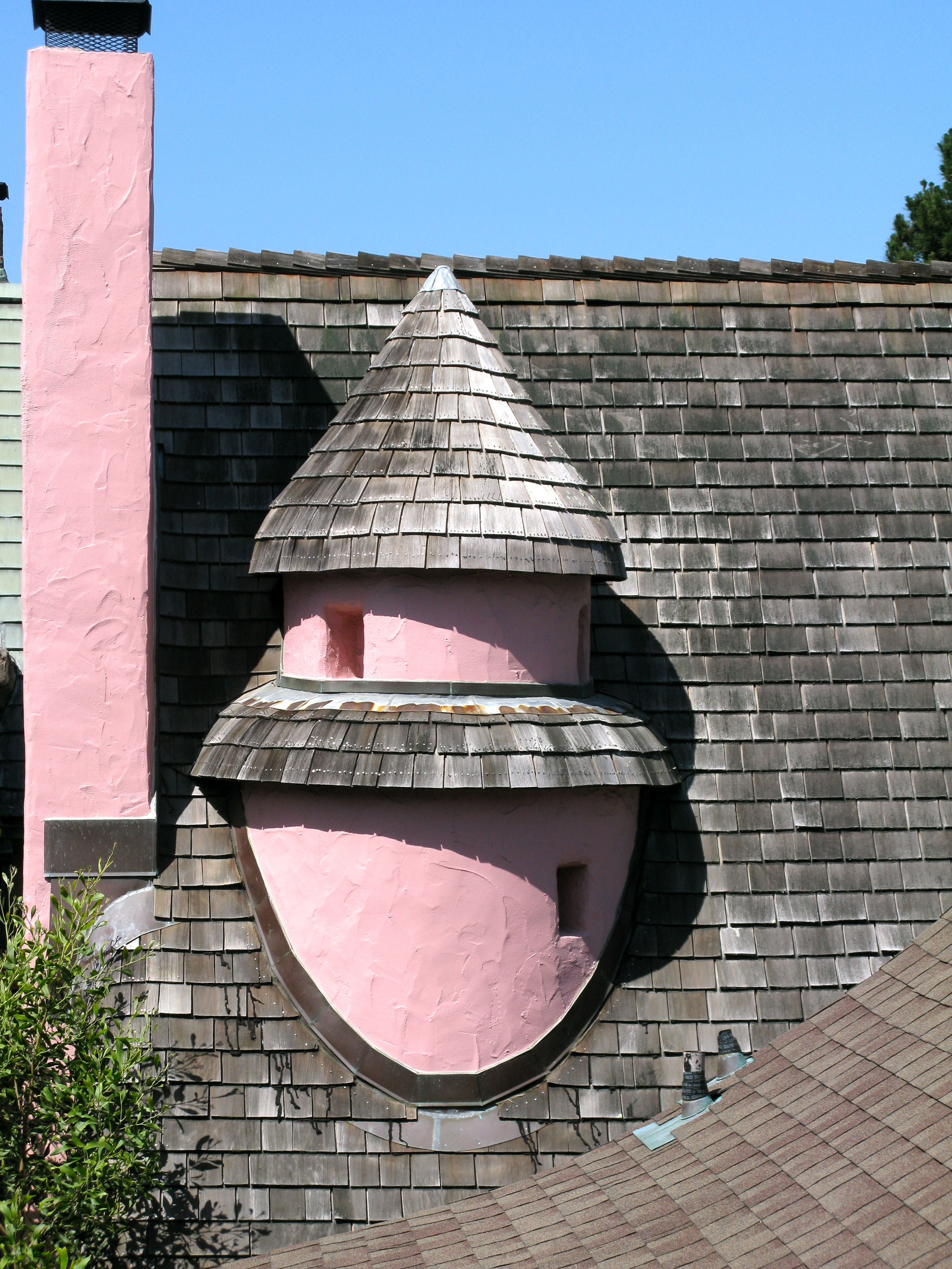 It was commissioned by novelist Hary Leon Wilson. He had Lee Gottfried design it to house his wife’s flower shop, The Bloomin’ Basement.