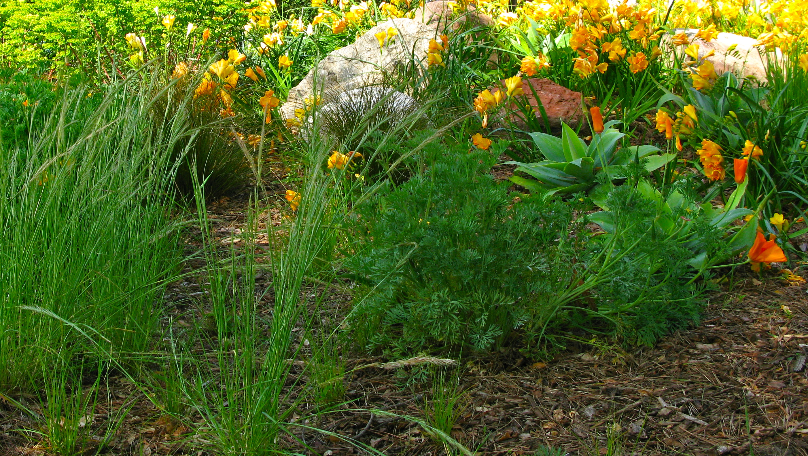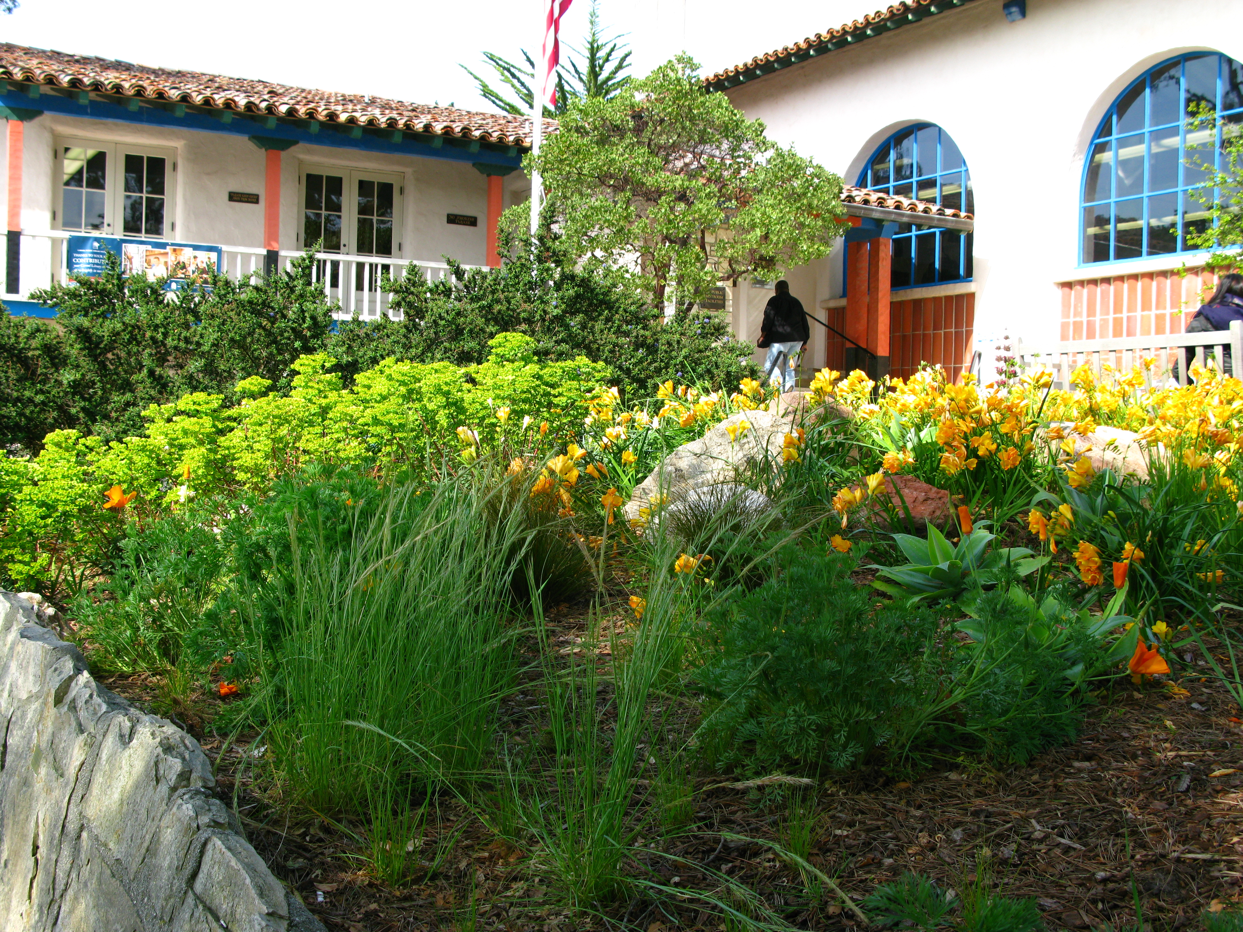 Local garden clubs helped redesign this worn out garden and it is looking fresh and cheerful. Later, at home in Kansas City, I visit the library web site and find that