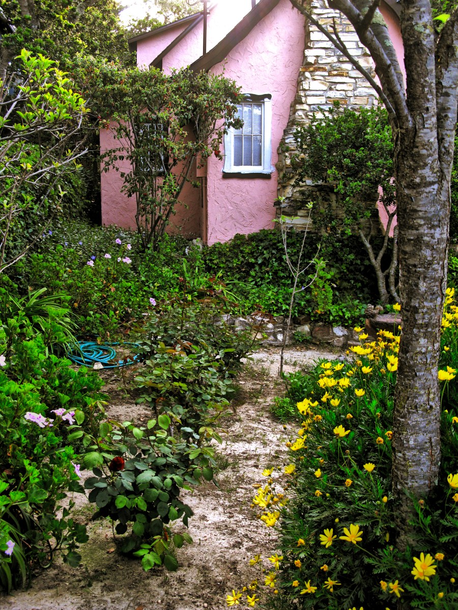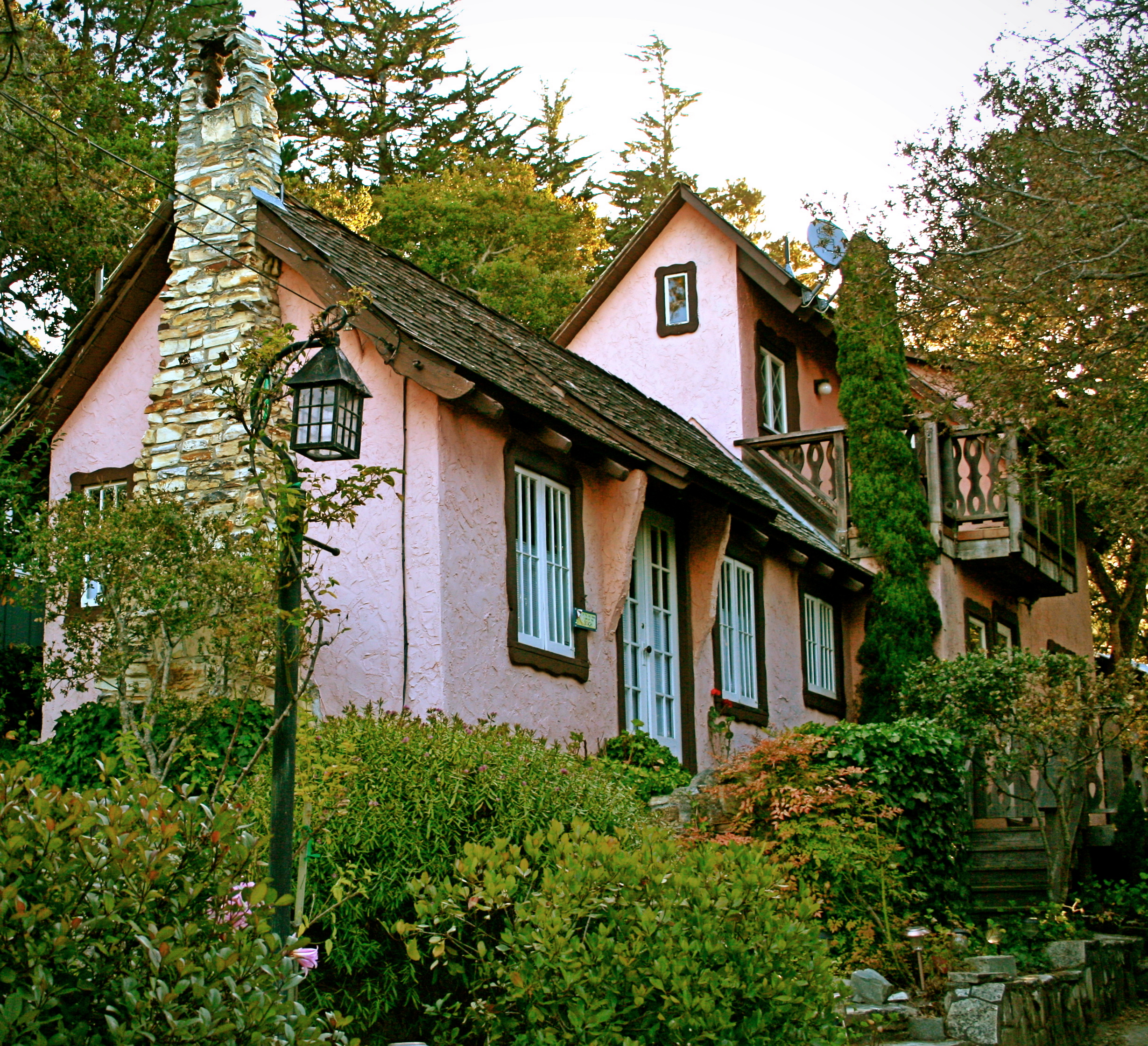 Boy, that sure looks like the hand-carved trim on a Comstock. And that nifty Carmel stone chimney. I catch a peek of the front porch