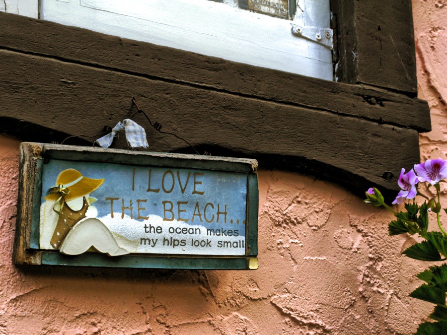I can see there is a sign hanging on the window and go up the porch steps to see. How Funny!
