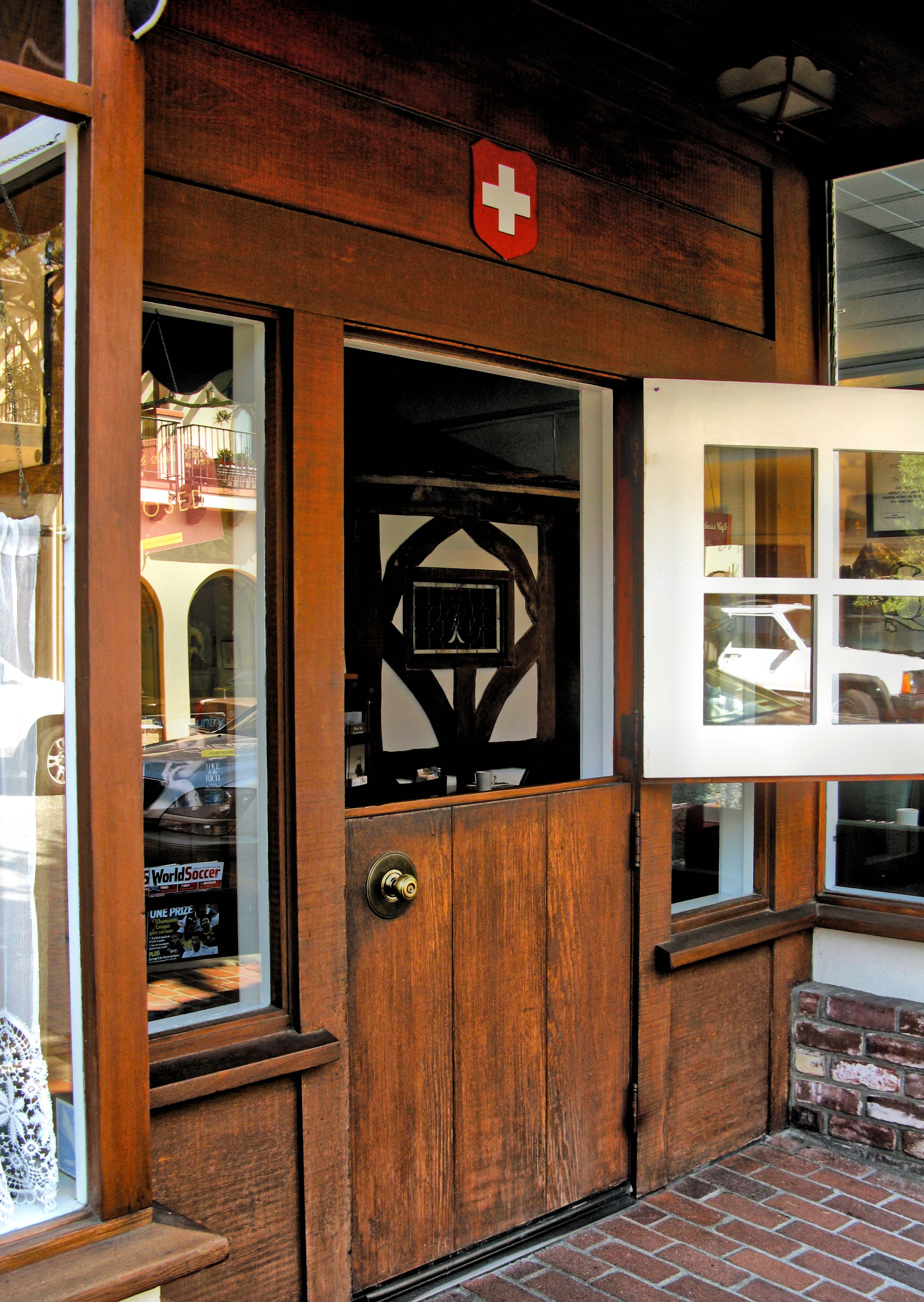 The Little Swiss Cafe has its door open.