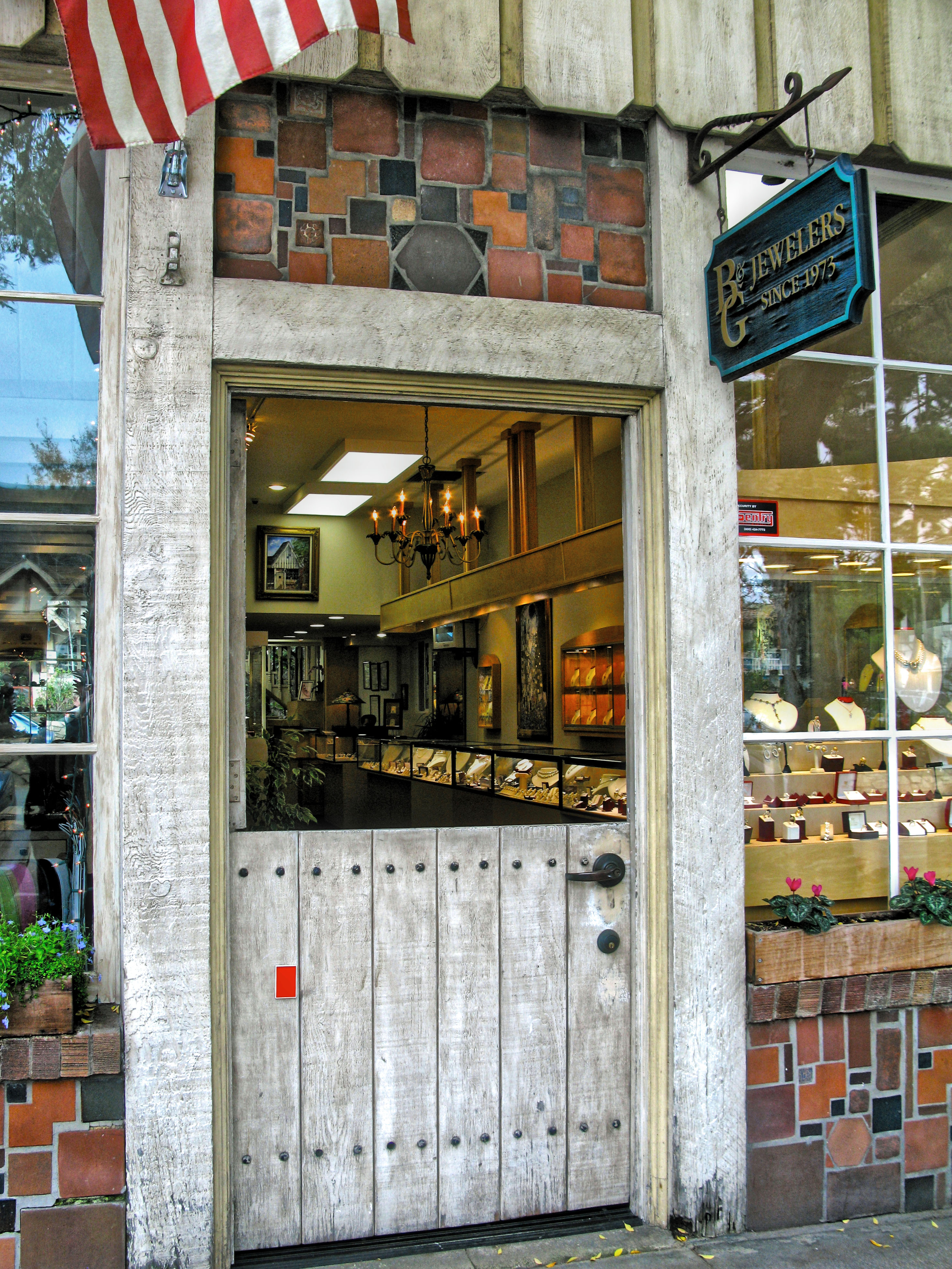 B and G Jewelers is open. I think their door is one of the handsomest.