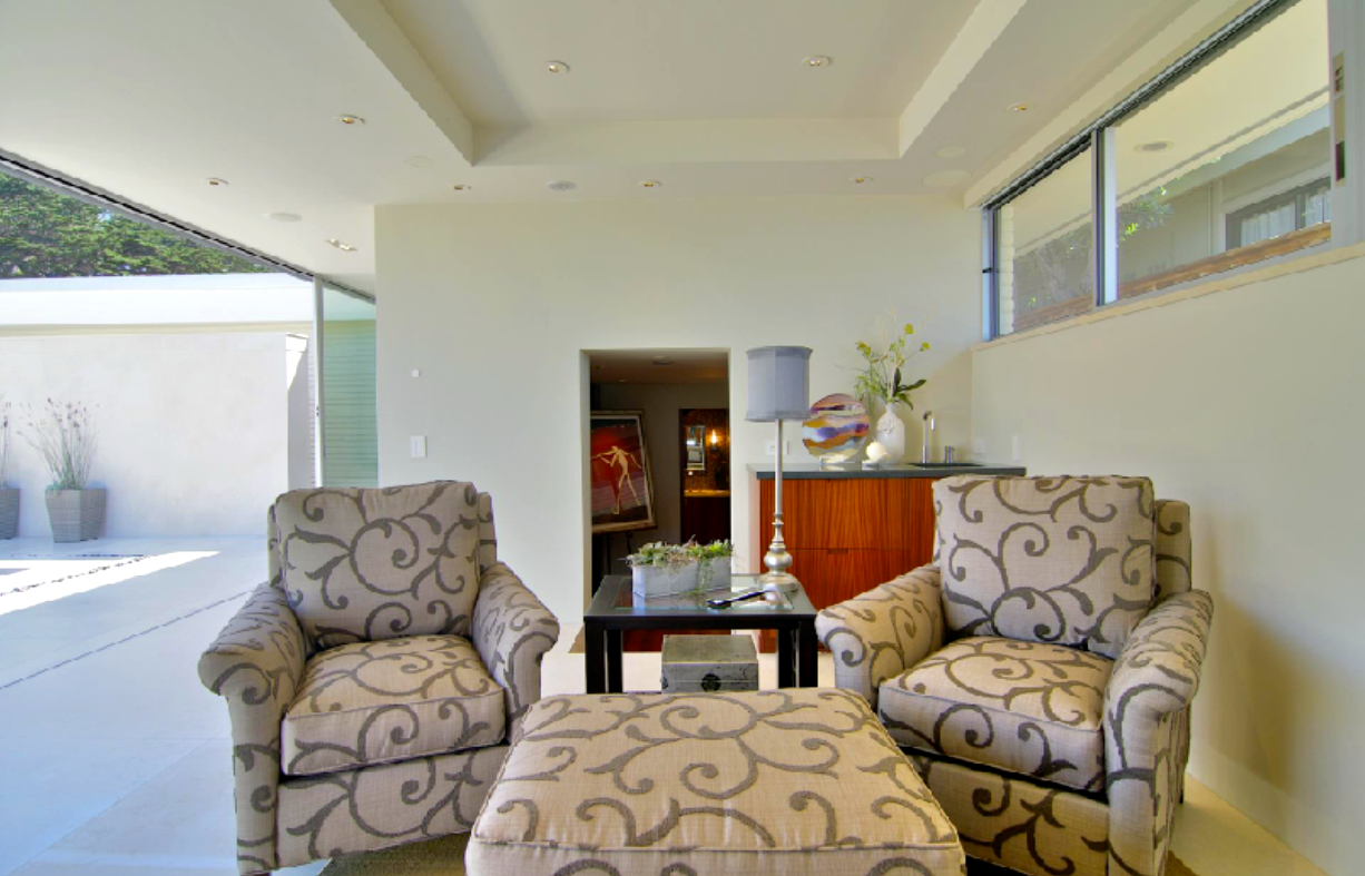 Time and the harsh environmental conditions took it’s toll on the exterior of the home. Many changes to the interior took place from the original design such as the demolition of the chimineyless circular fireplace in the living room and the covering over of a sunken seat area along the window overlooking the ocean. The interior Courtyard/pool area had been changed to a flagstone patio after filling in the original kidney-shaped swimming pool.