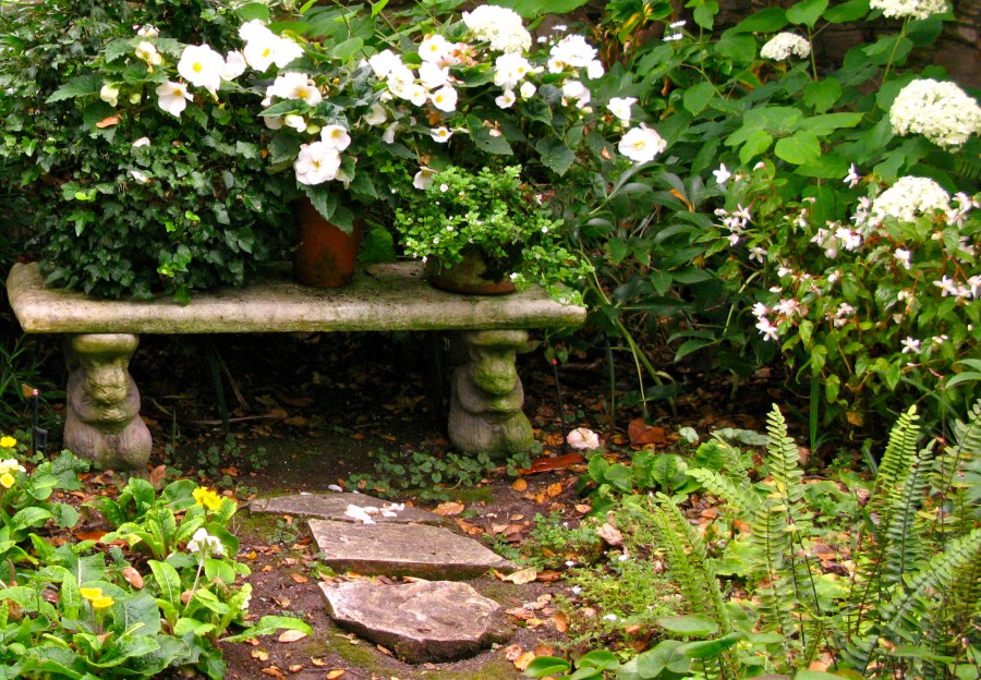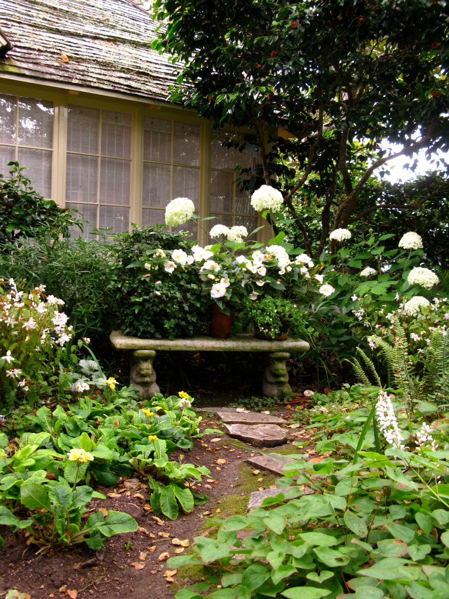 The owner uses the bench to display her pots. The topiary bunny needs a trim. Too bad I don’t have my Joyce Chen scissors. I have always been gifted with scissors.