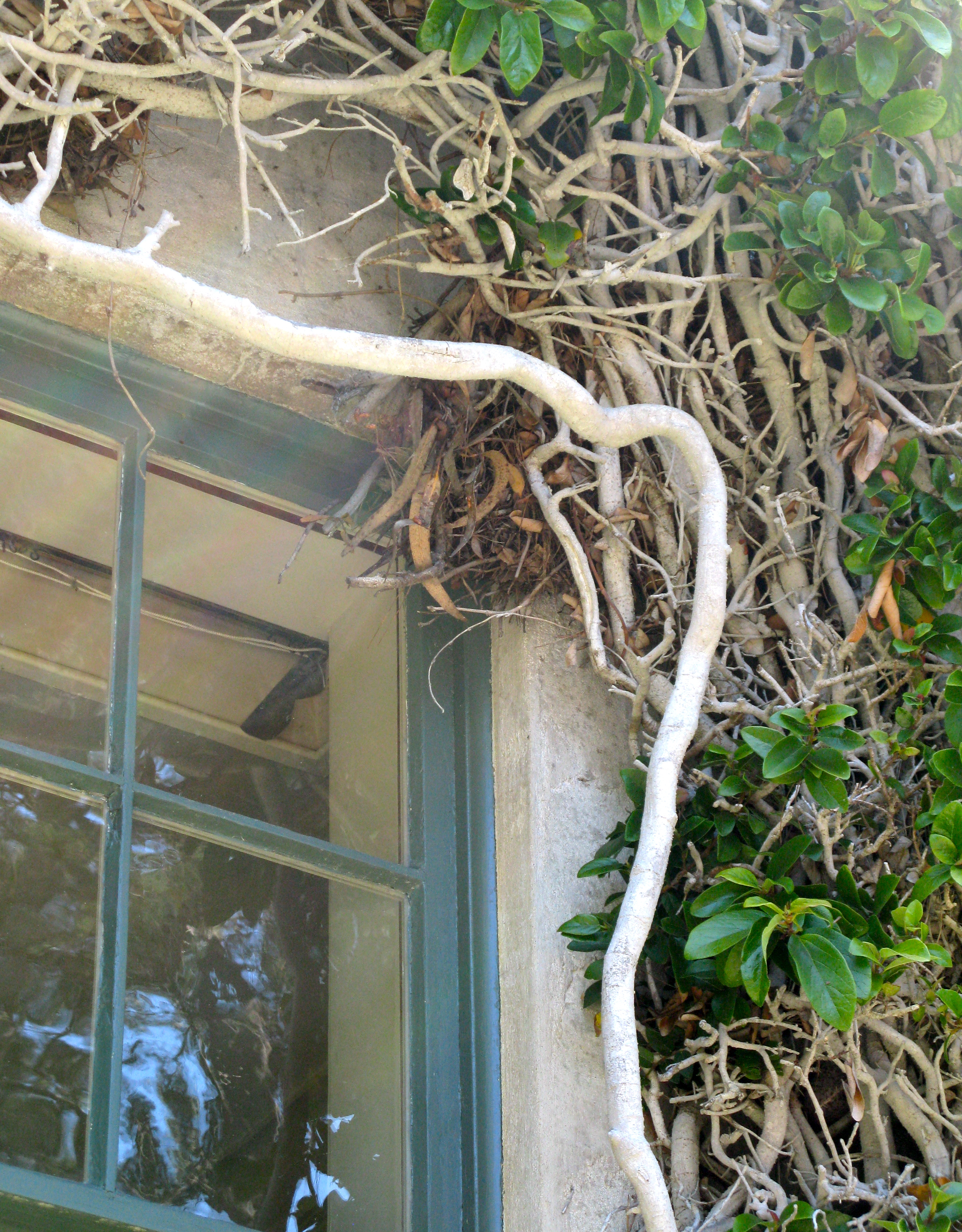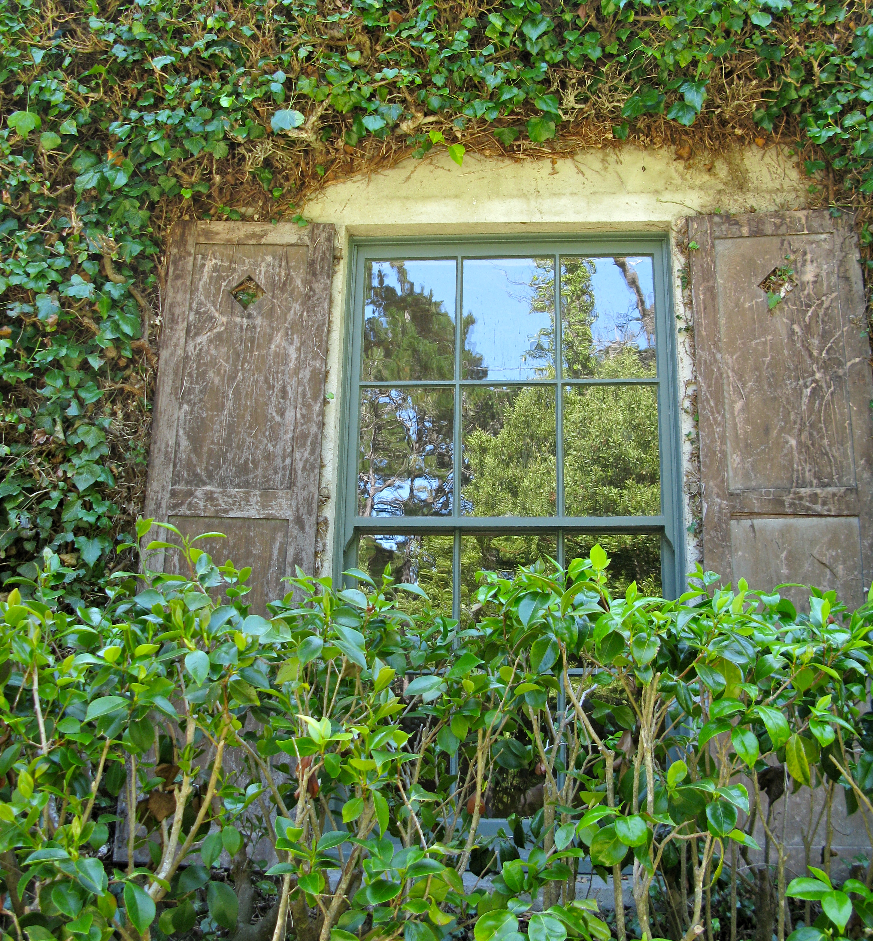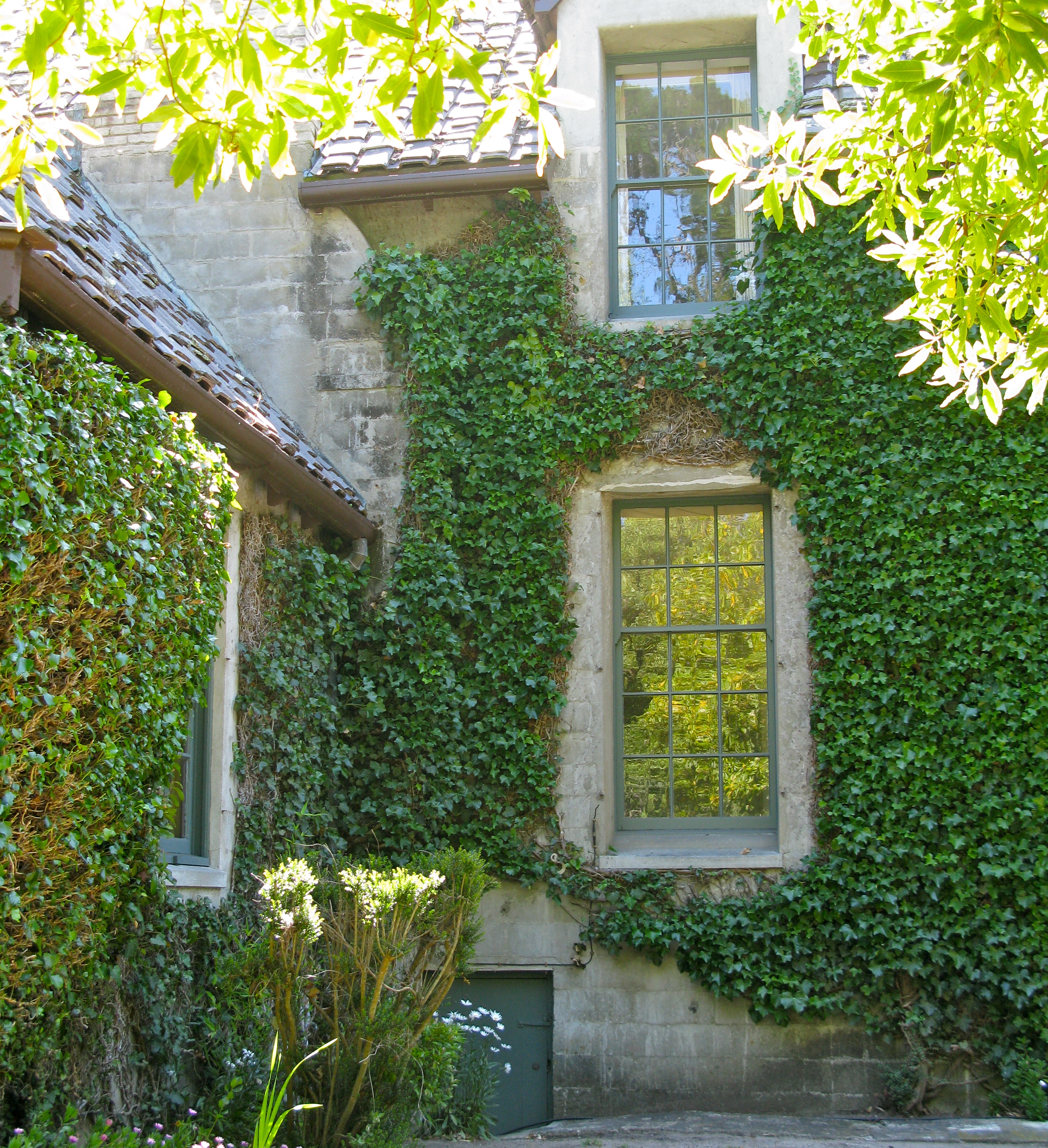 Windows can barely keep out the ivy.