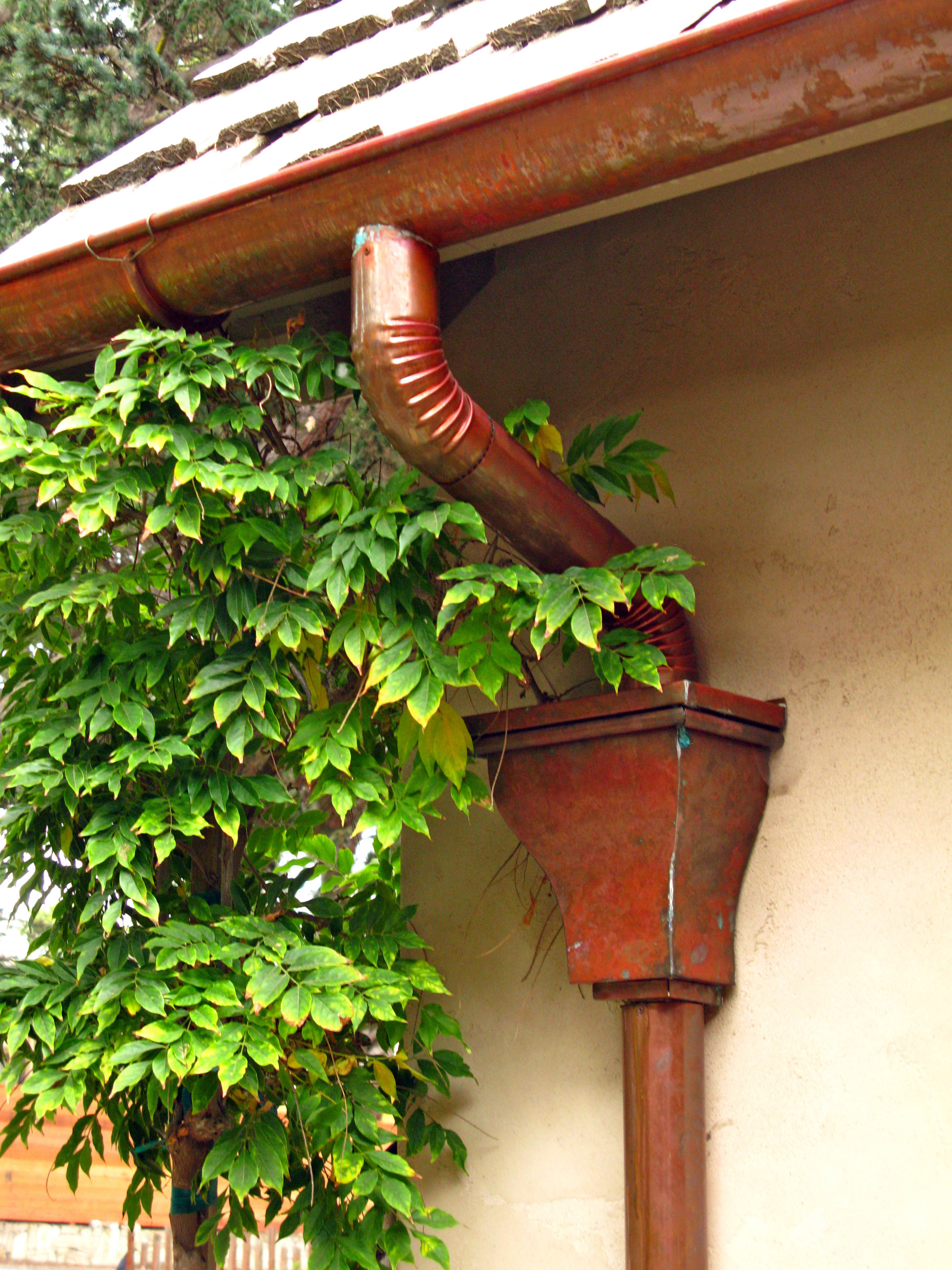 I admire the copper gutters and downspouts