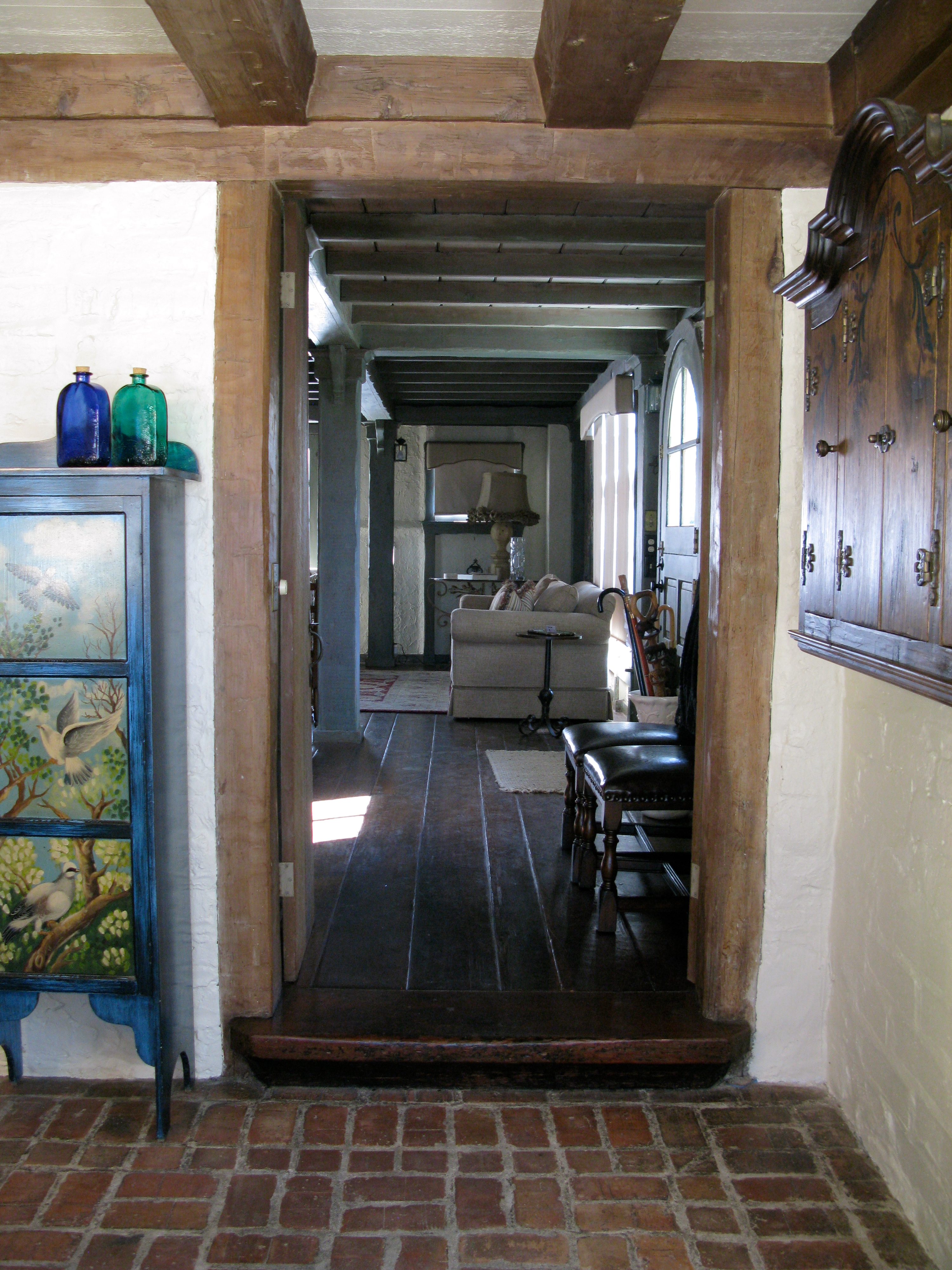 The house is built around this two-story entry with its original skylights . From here I have a glimpse of almost every room in the house.