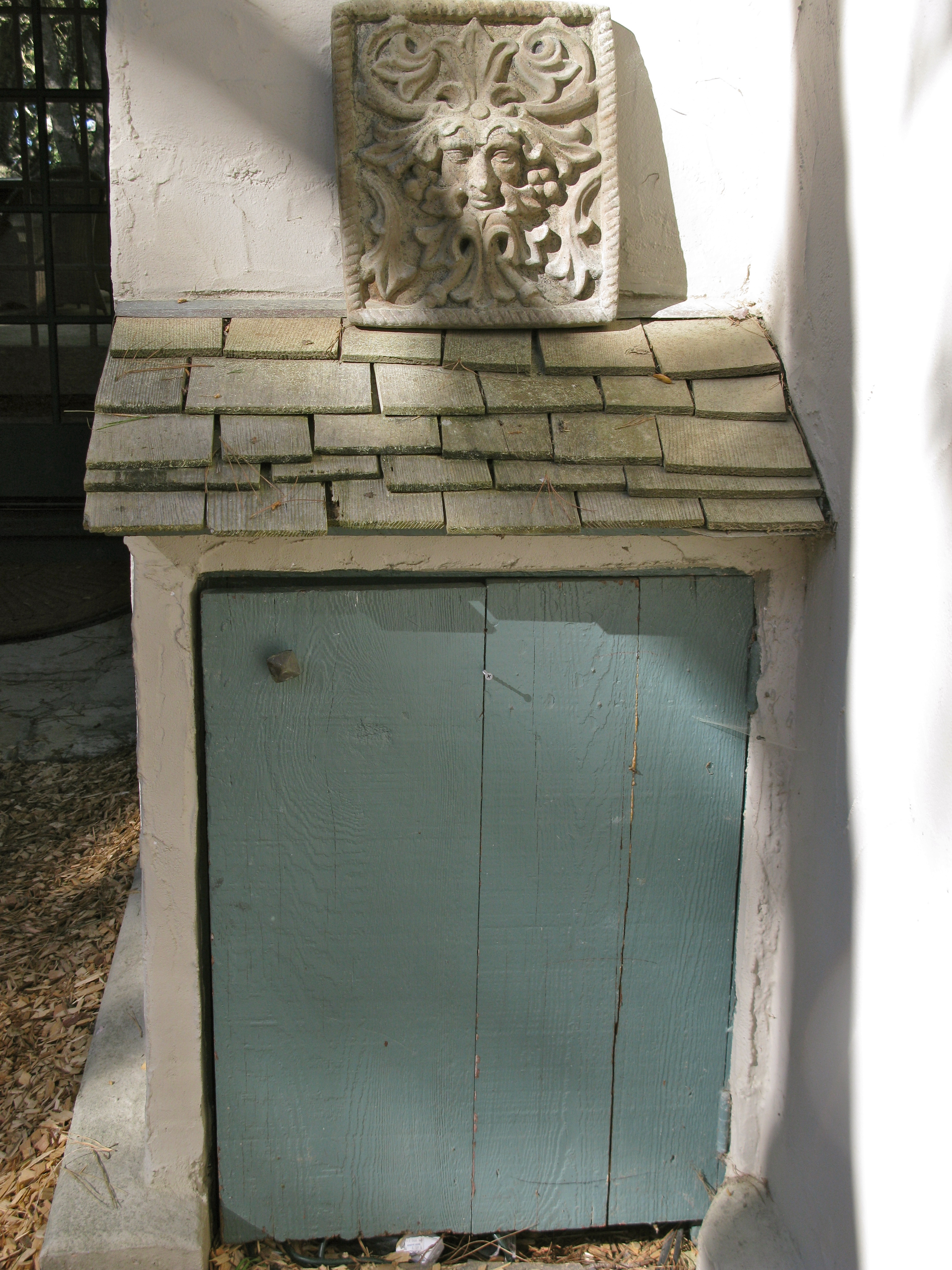 I am still “Comstock hunting” when I discover Curtain Call. The little cottage is being renovated and so I slip in through the gate and start toward the front door. What a captivating roof line , very steep with flared eves and undulating ridge lines.