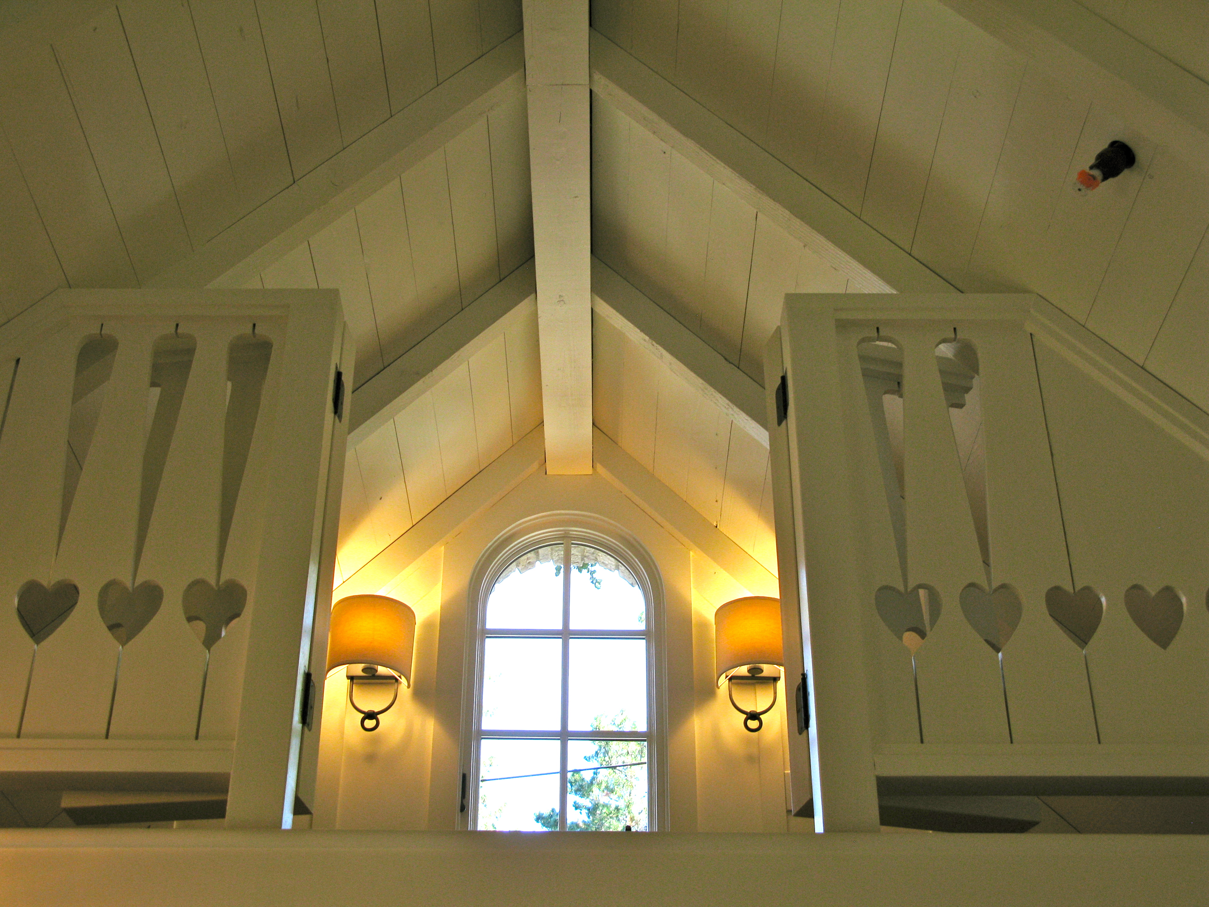I walk to the west end of the room and turn to a view of the upstairs sleeping loft.
