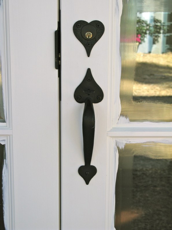 Every thing about this cottage seems feminine. From here stairs to the right lead to the loft and a door to the left opens to a patio.