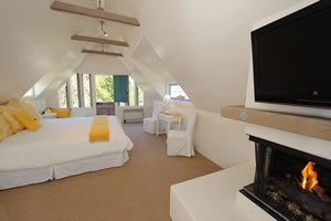 with its huge stone fireplace.