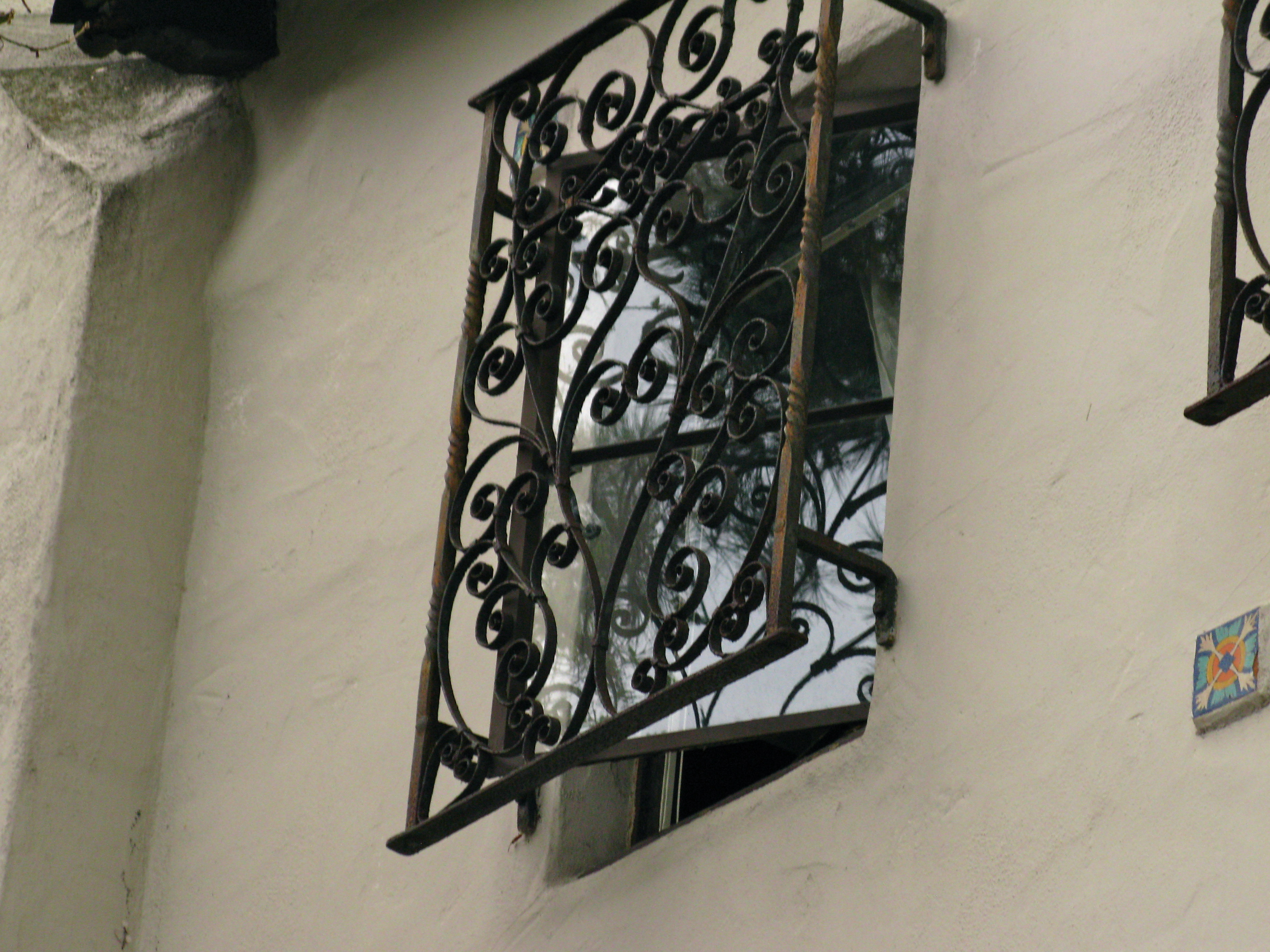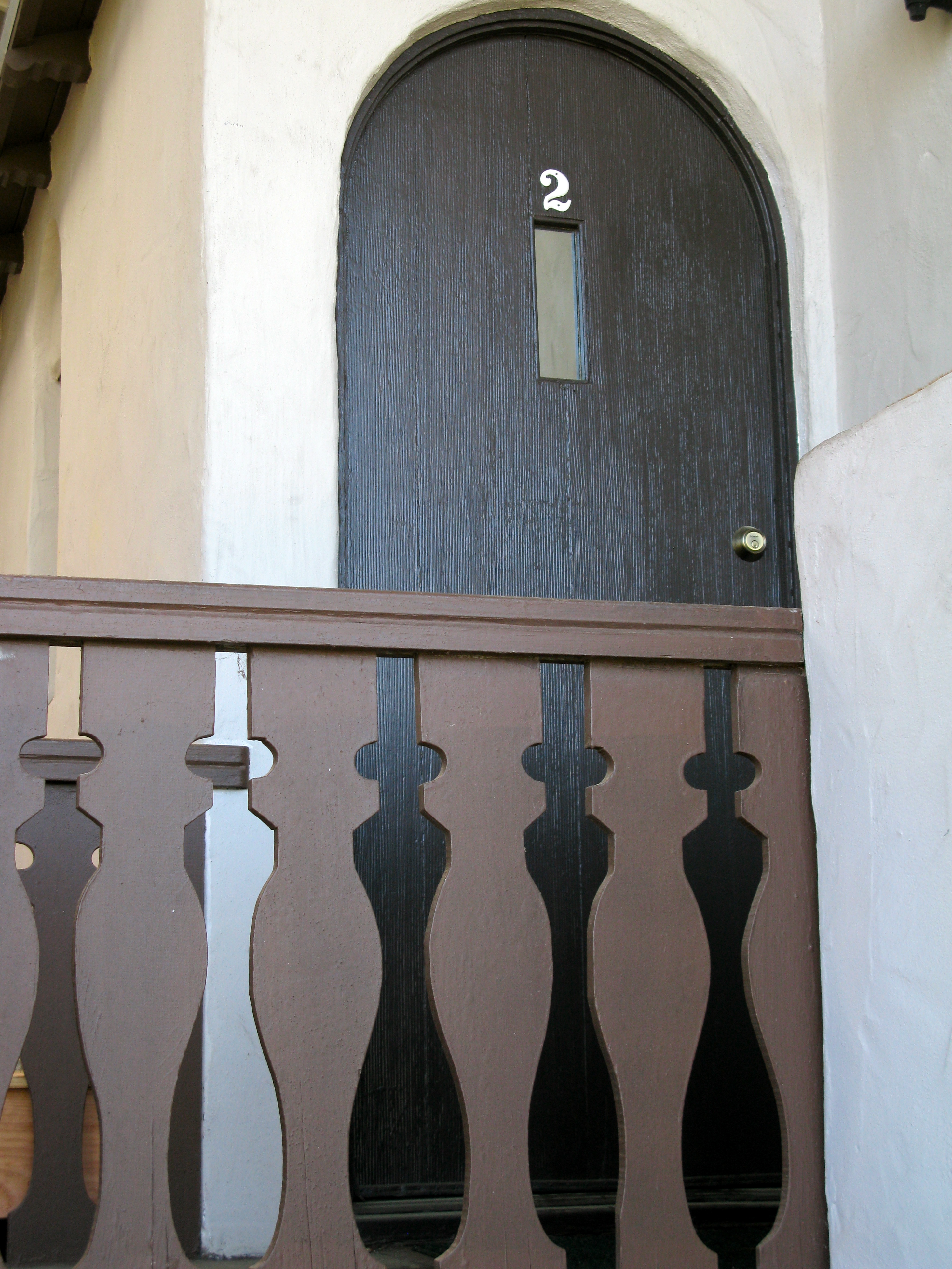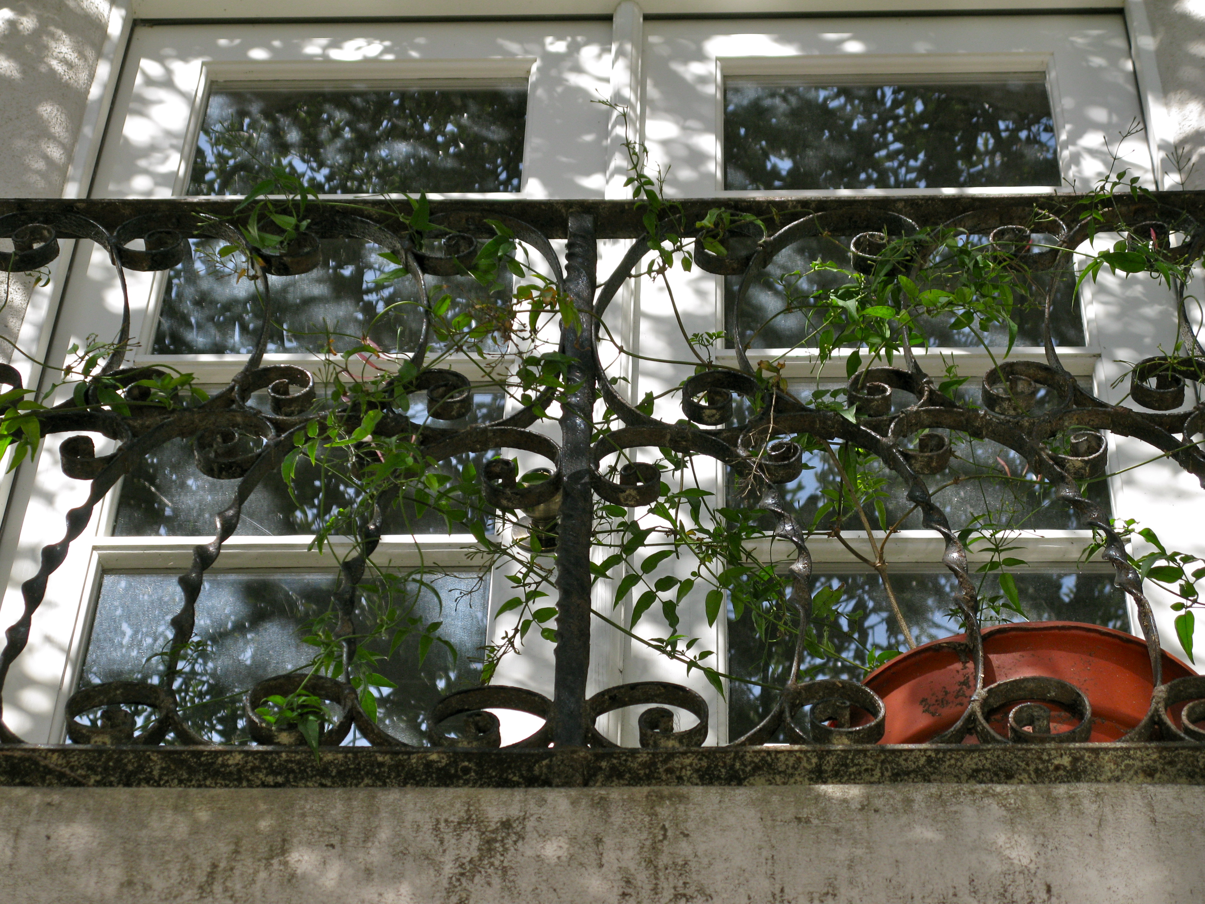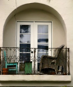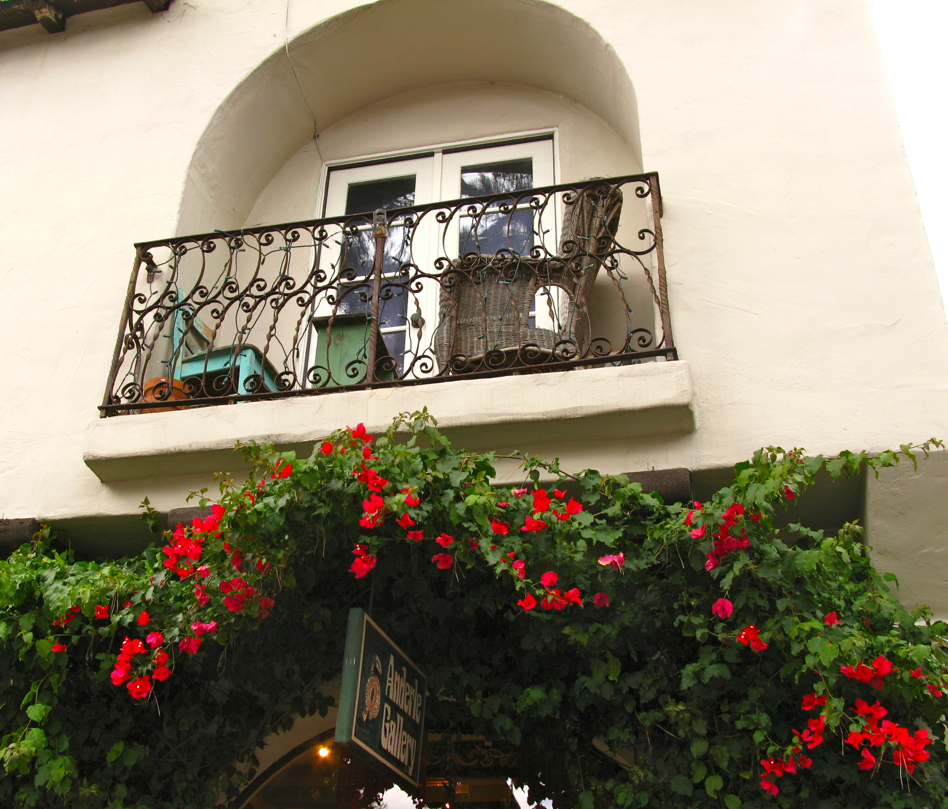 Exiting the shop I gaze up at the second-story balconies of the apartments located over the shop.