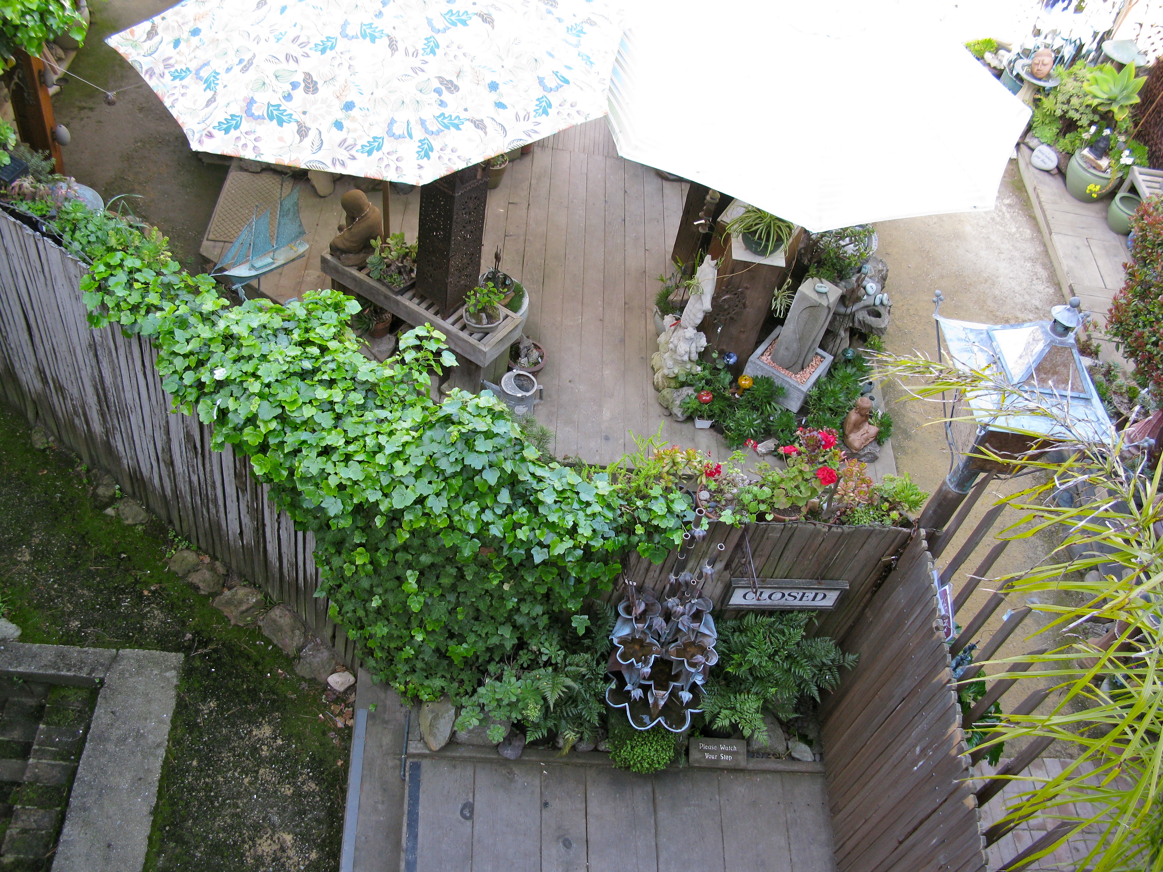 I can also look down to the turquoise bench and the closed gate that leads into Aslan’s Garden Aslan’s Garden |