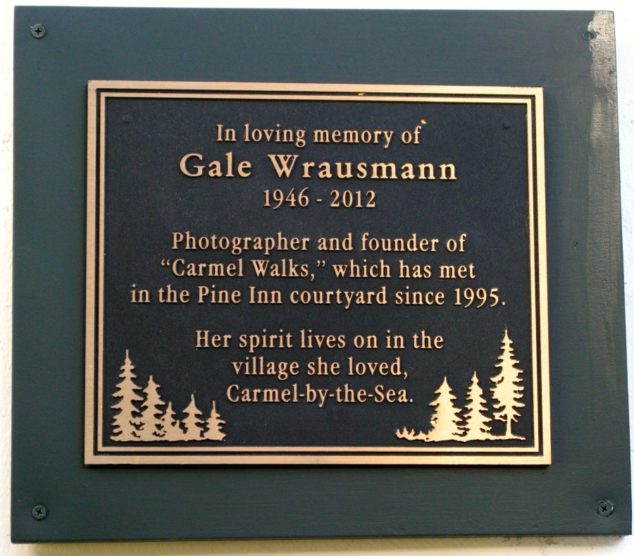 I sign up and ask if I may blog about my experience and photograph as we go. We again gather in the courtyard of the Pine Inn where a plaque honors Gale Wrausmann.