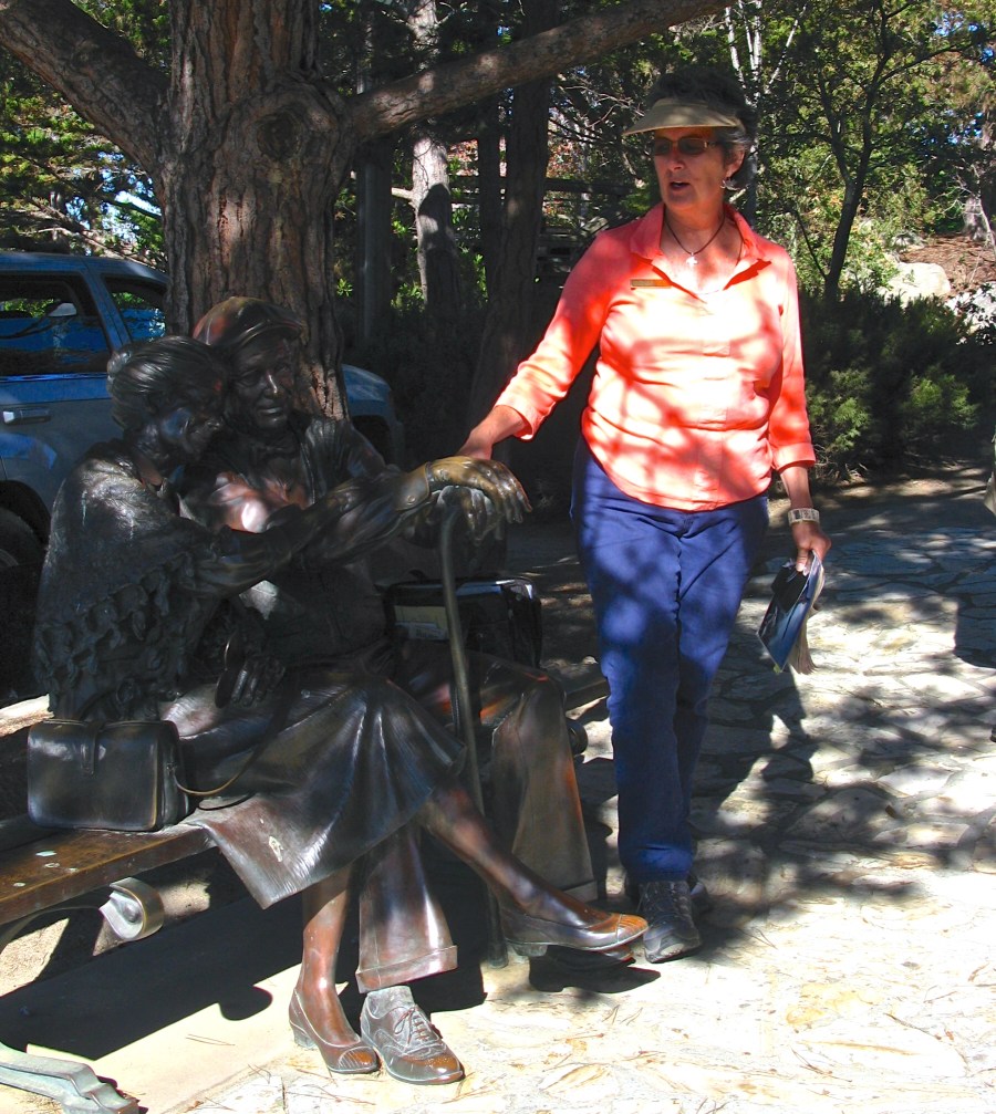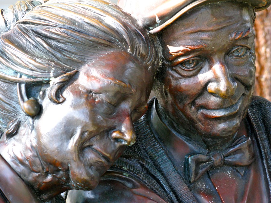 We move across the street to the  bronze sculpture of a devoted elderly couple entitled “The Valentine”by sculpture George Wayne Lundeen.