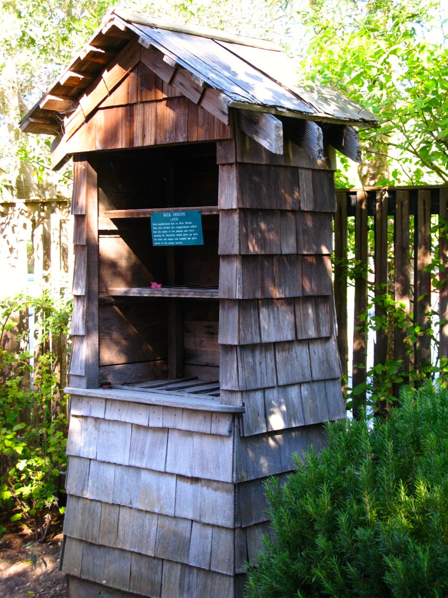 Gael points out the Milk Shrine. In Carmel’s early days, these shrines were around town. Residents would leave their empty bottles and orders here for the milkman and return to pick up their milk.