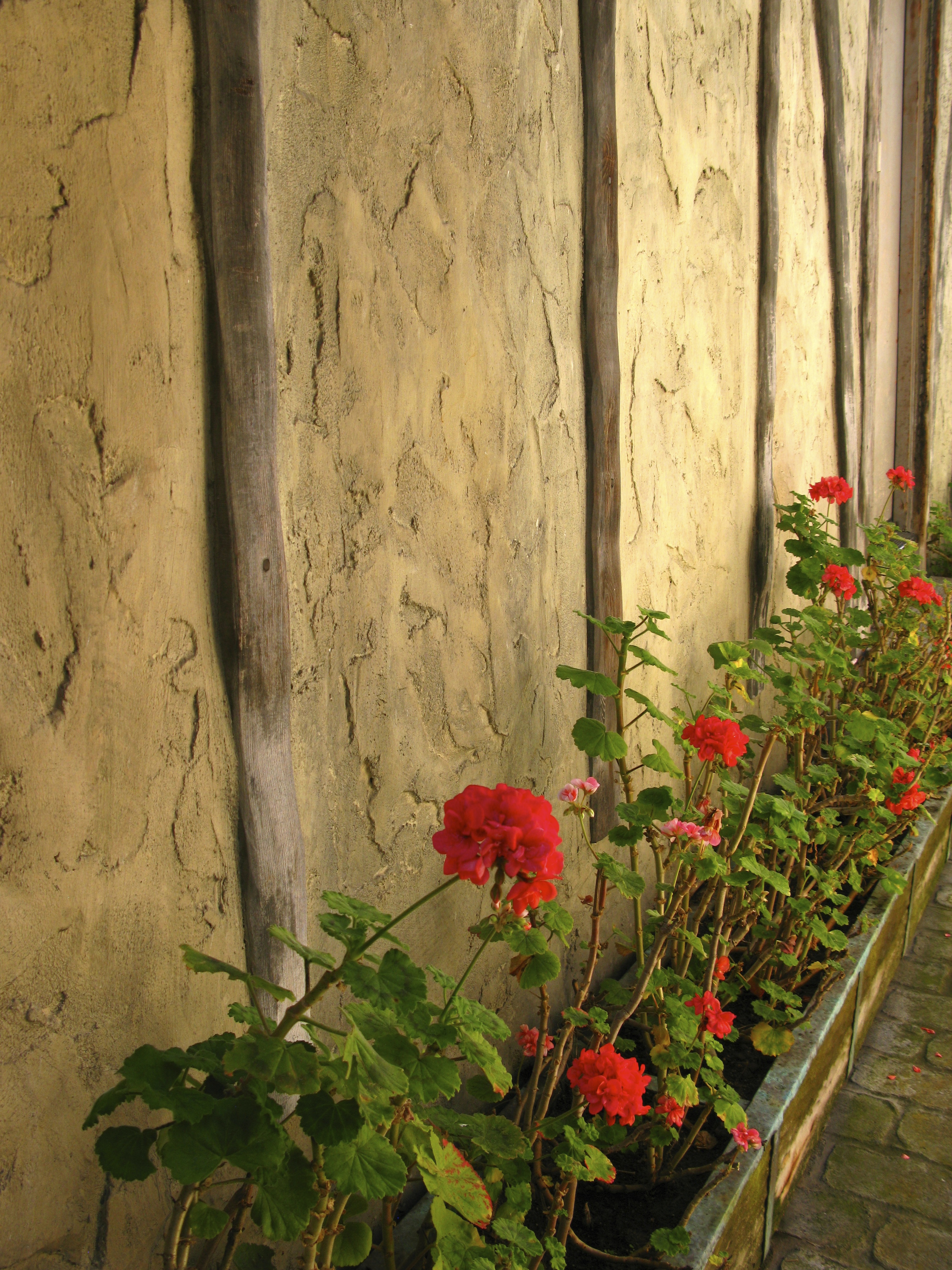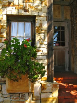 With its warm golden stucco, brick, stone, unusual window boxes.