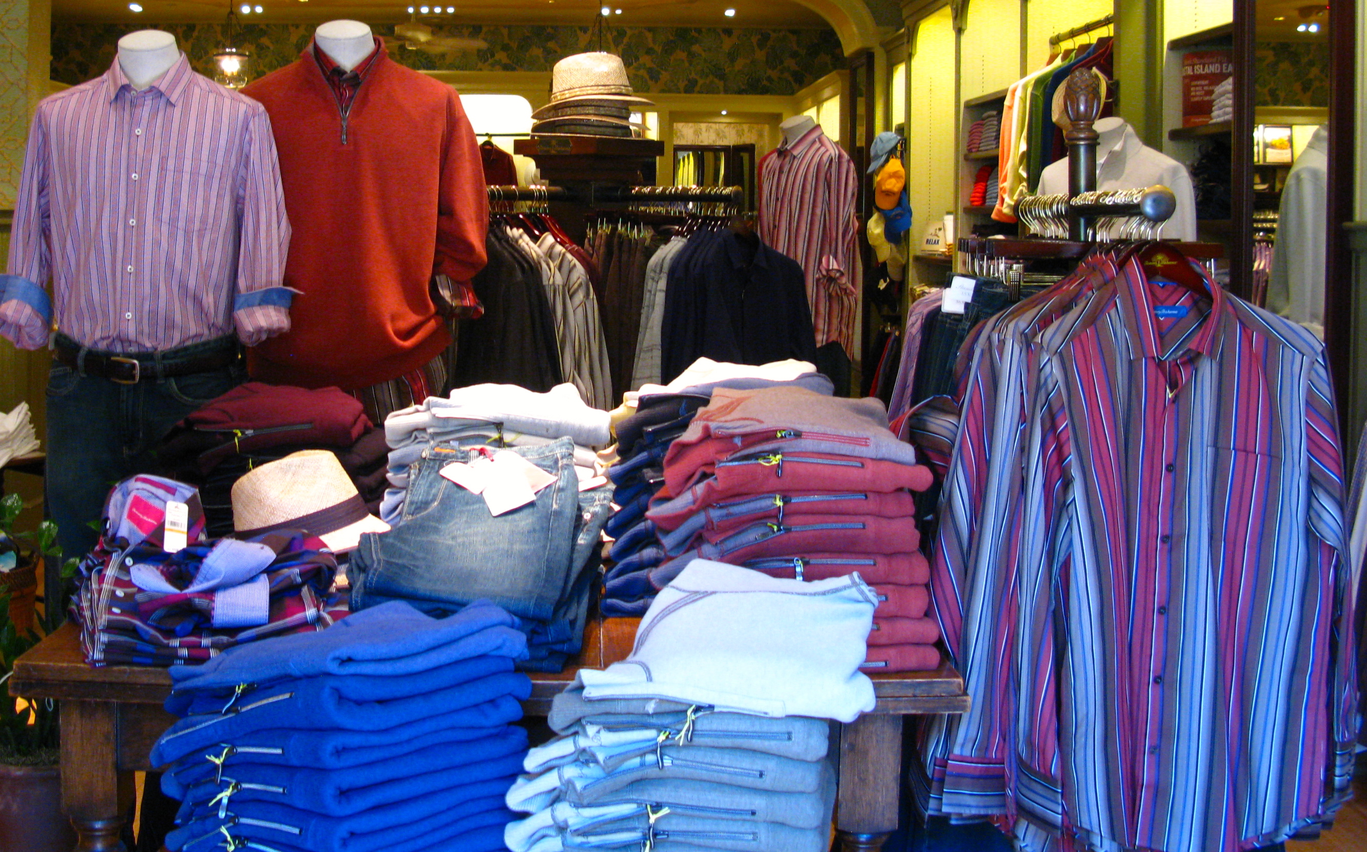 Casual contemporary clothing. Lines include Tommy Bahama, Brighton, Reny and Scully.