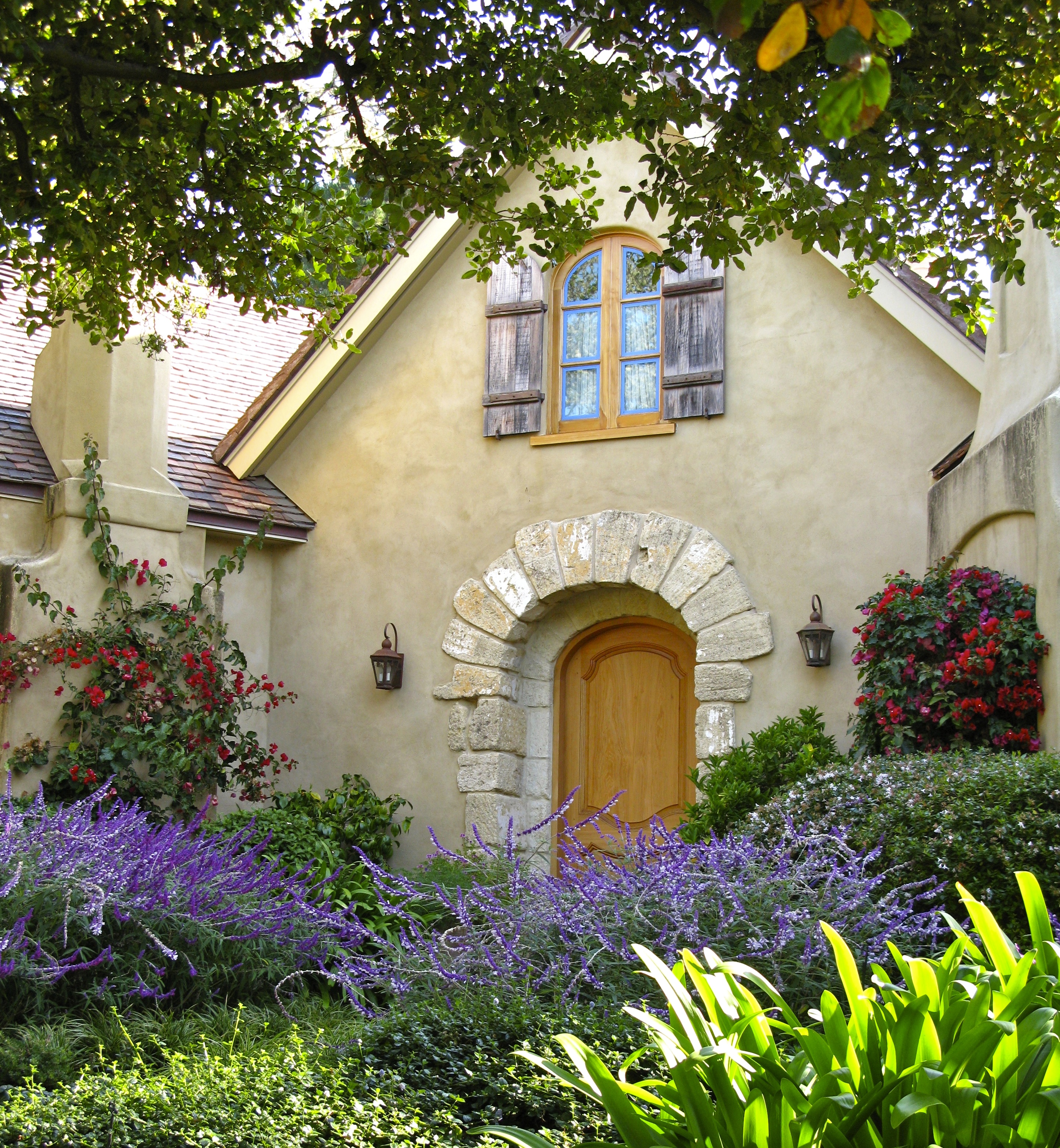 Shrubs really call attention to the front door of this cottage. I can not even imagine it without them.
