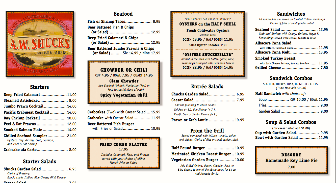 At the Ocean Ave. Entrance is A.W. Shucks oyster bar.