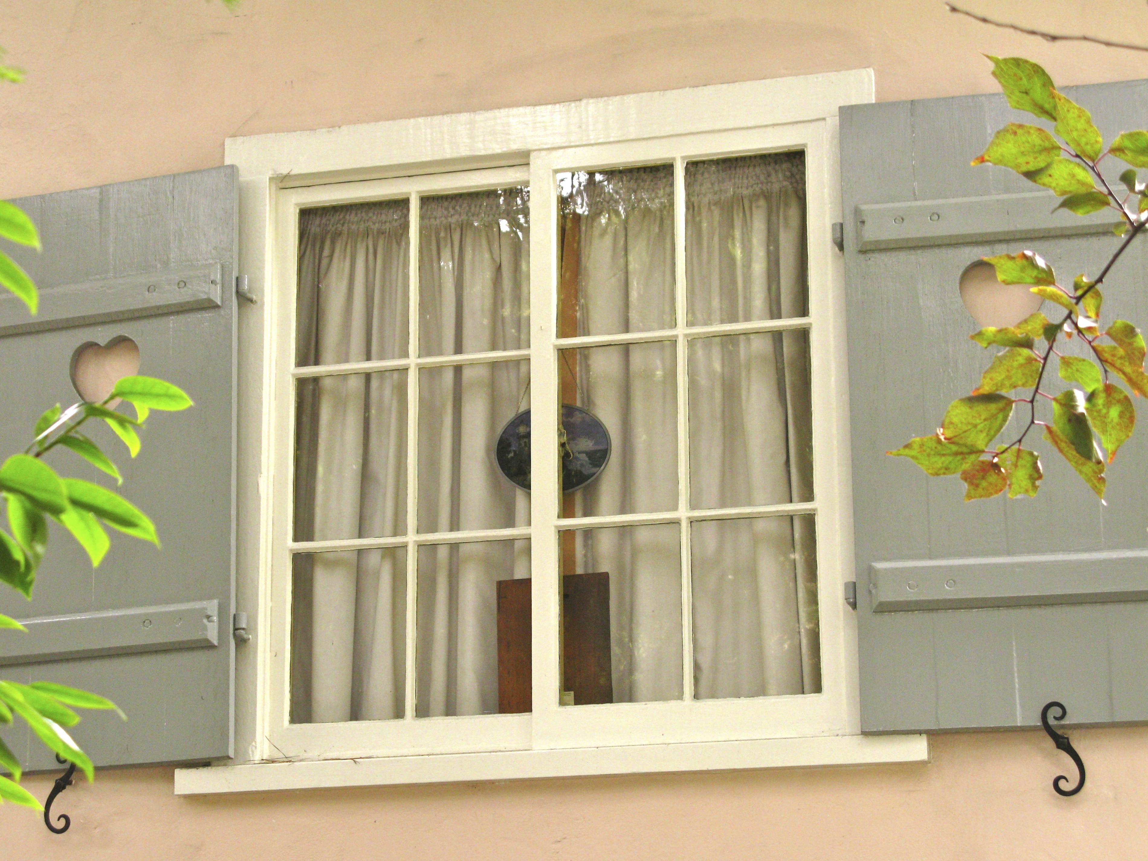 I admire the geranium planted window box and shutters.