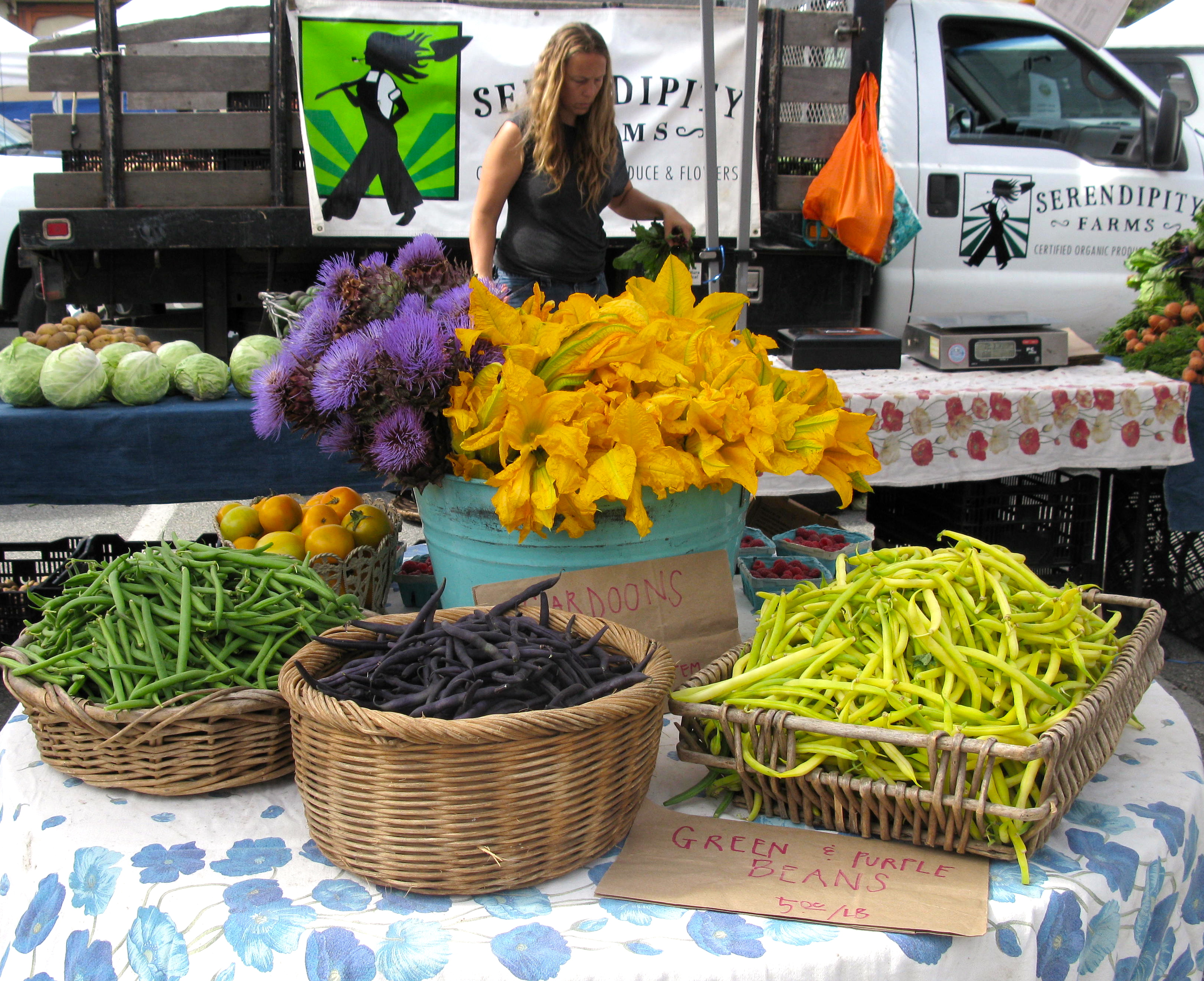 Serendipity Farms – Selling certified organic vegetables&flowers knows how to market for visual appeal.