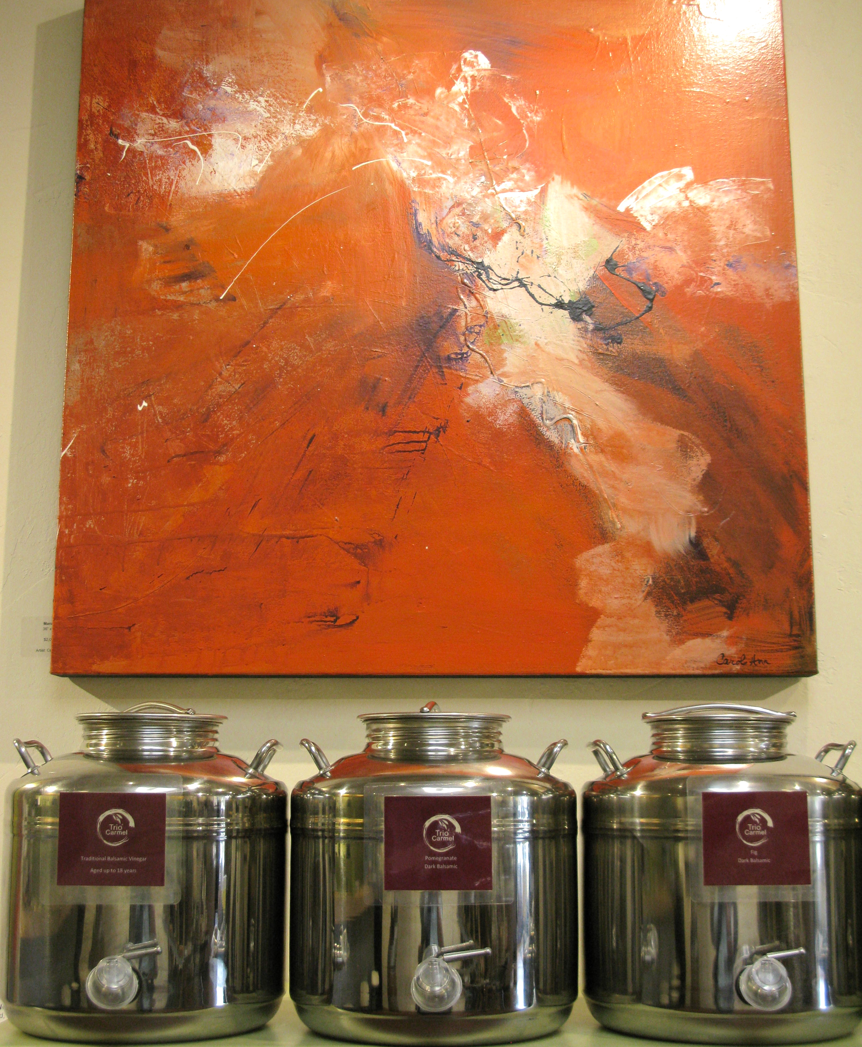 The first thing you notice when entering Trio Carmel is the vibrant and richly contemporary atmosphere that’s generated by the fabulous work of the artists they exhibit.