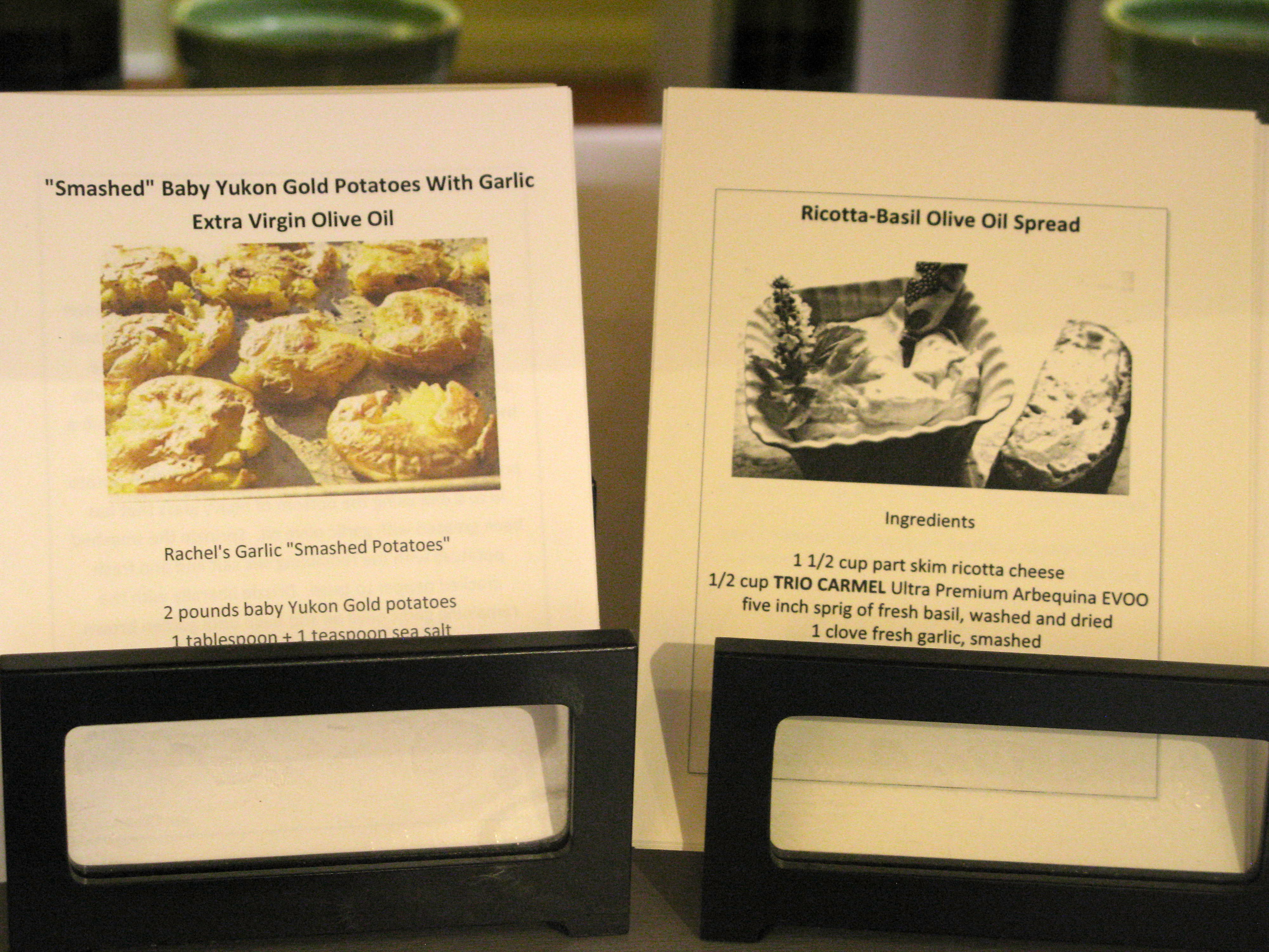 The owners suggest ways to use their vinegar and oils in salad dressings and marinades and for ice cream toppings,