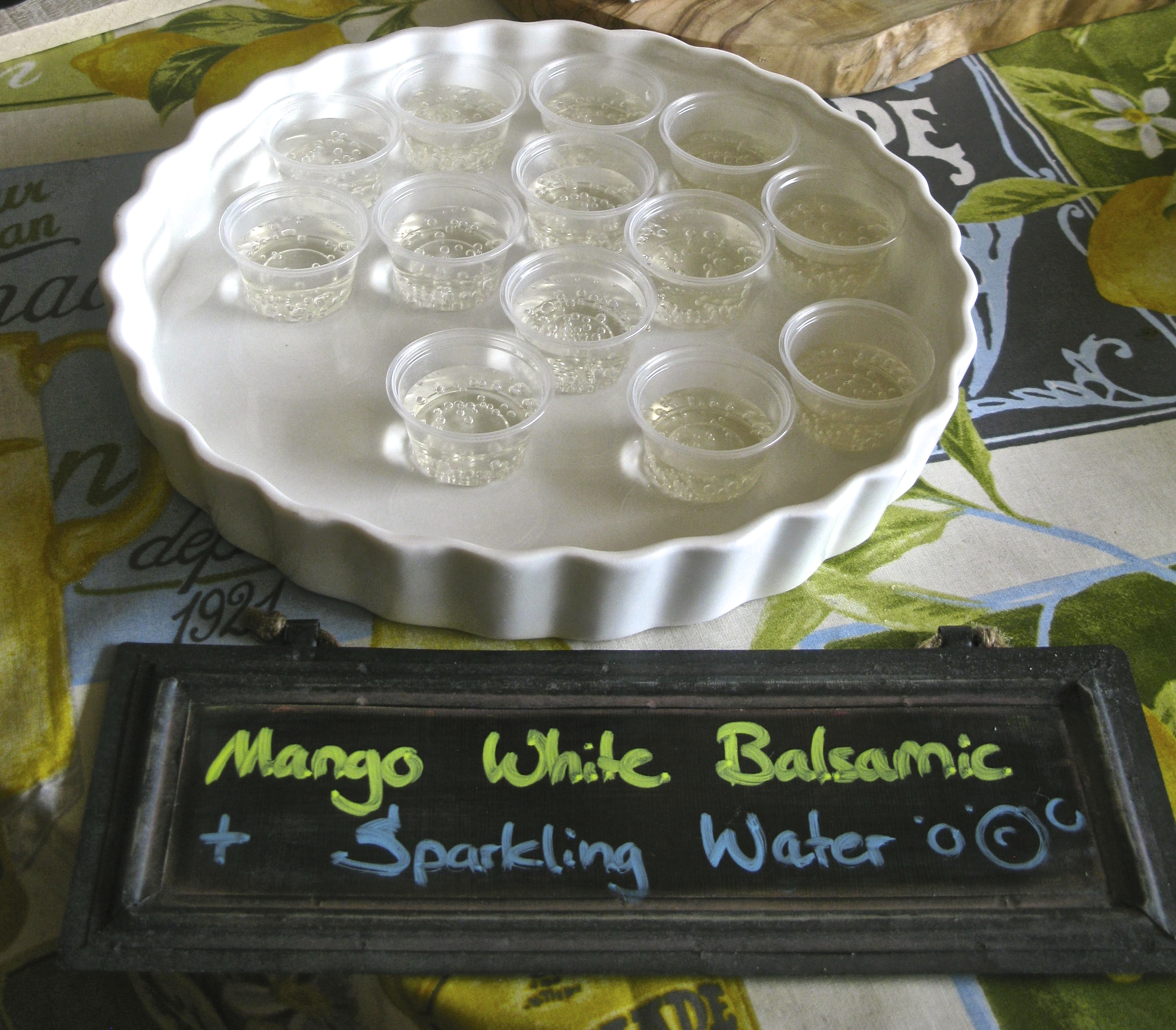 sampling vinegar such as Pomegranate Dark Balsamic and Fig Dark Balsamic.