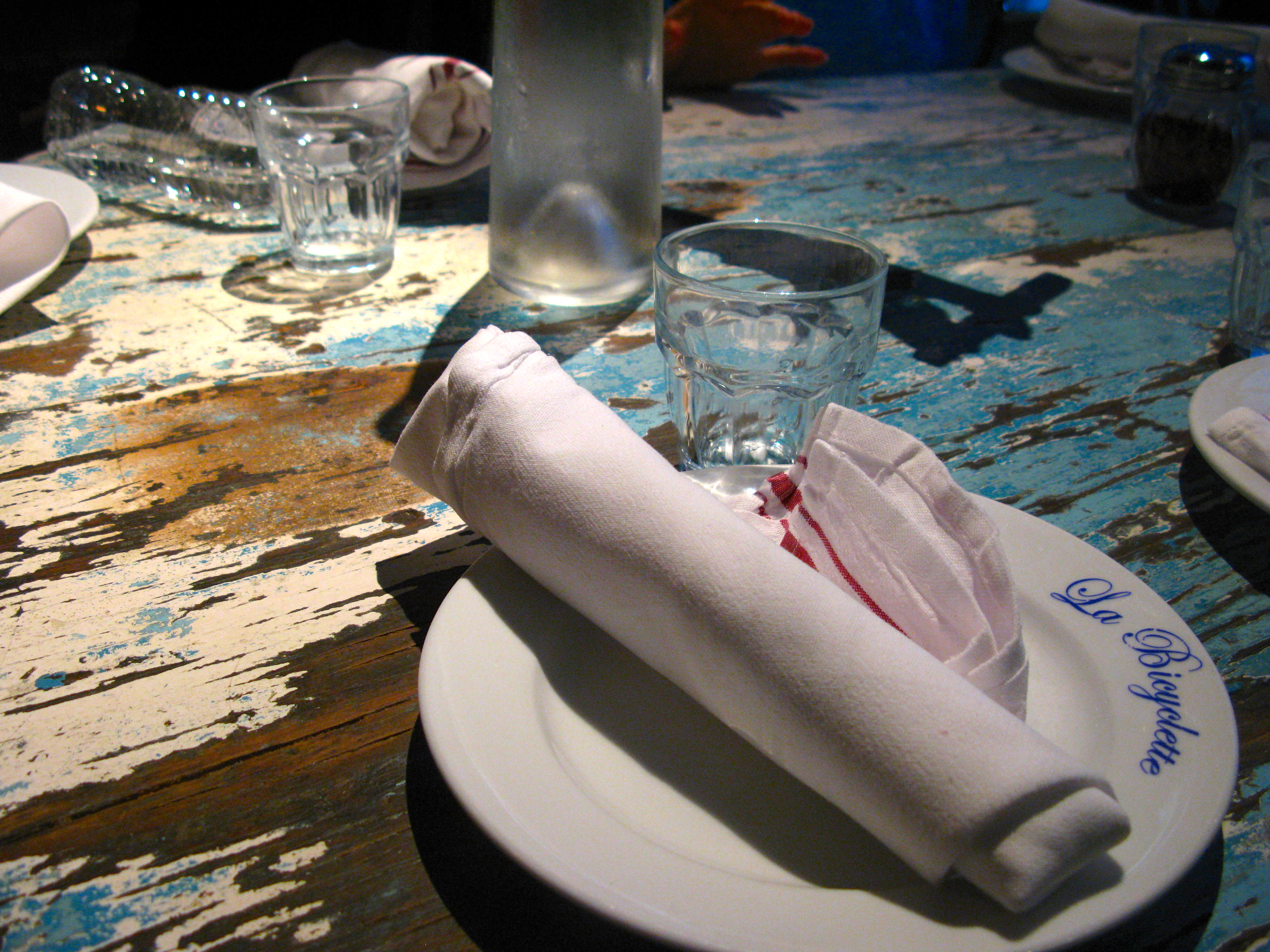 Next we are seated in the back room of la bicyclette,