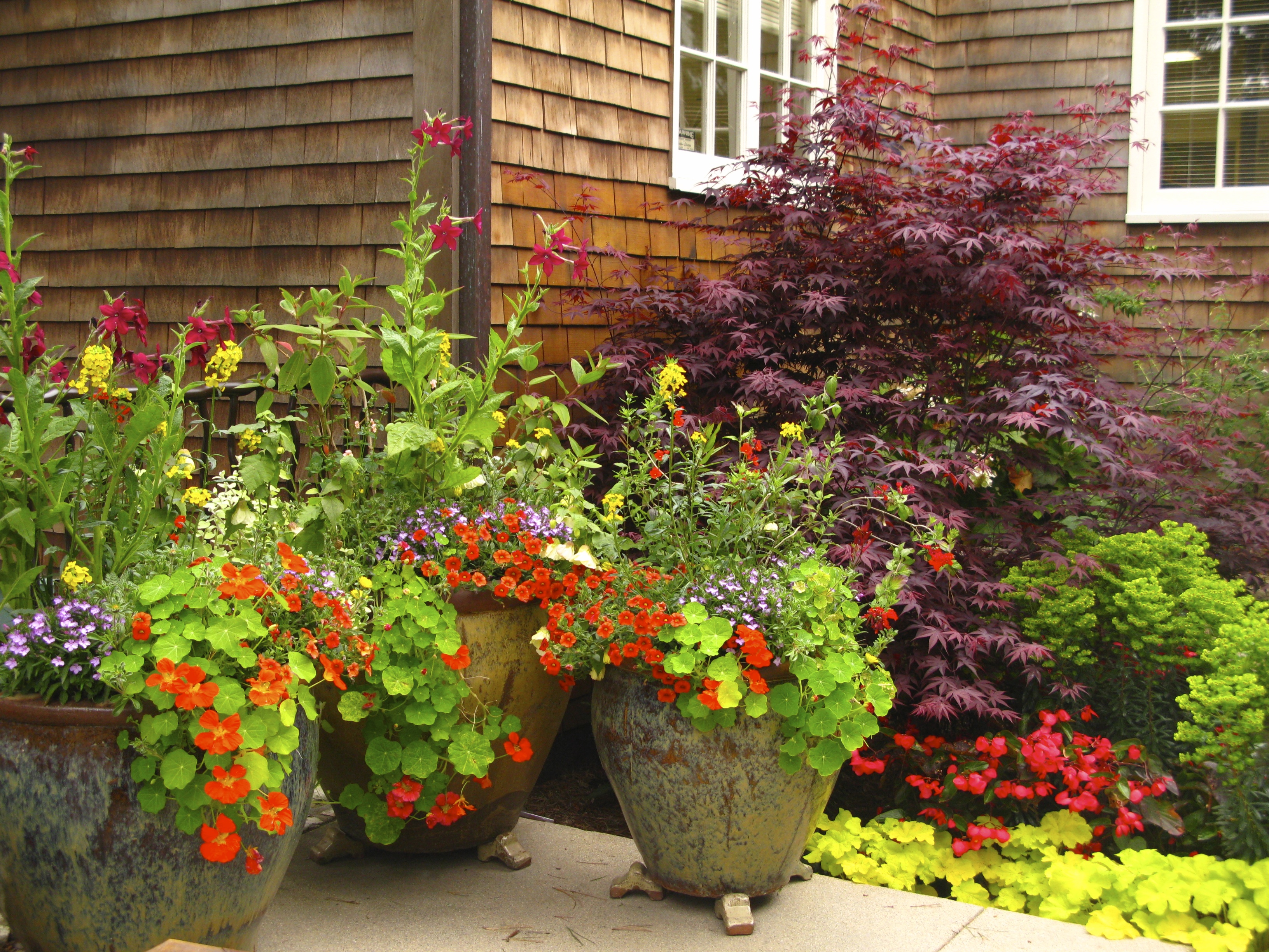 I take time to enjoy the new landscaping funded by a grant made by Constance Meach Ridder.