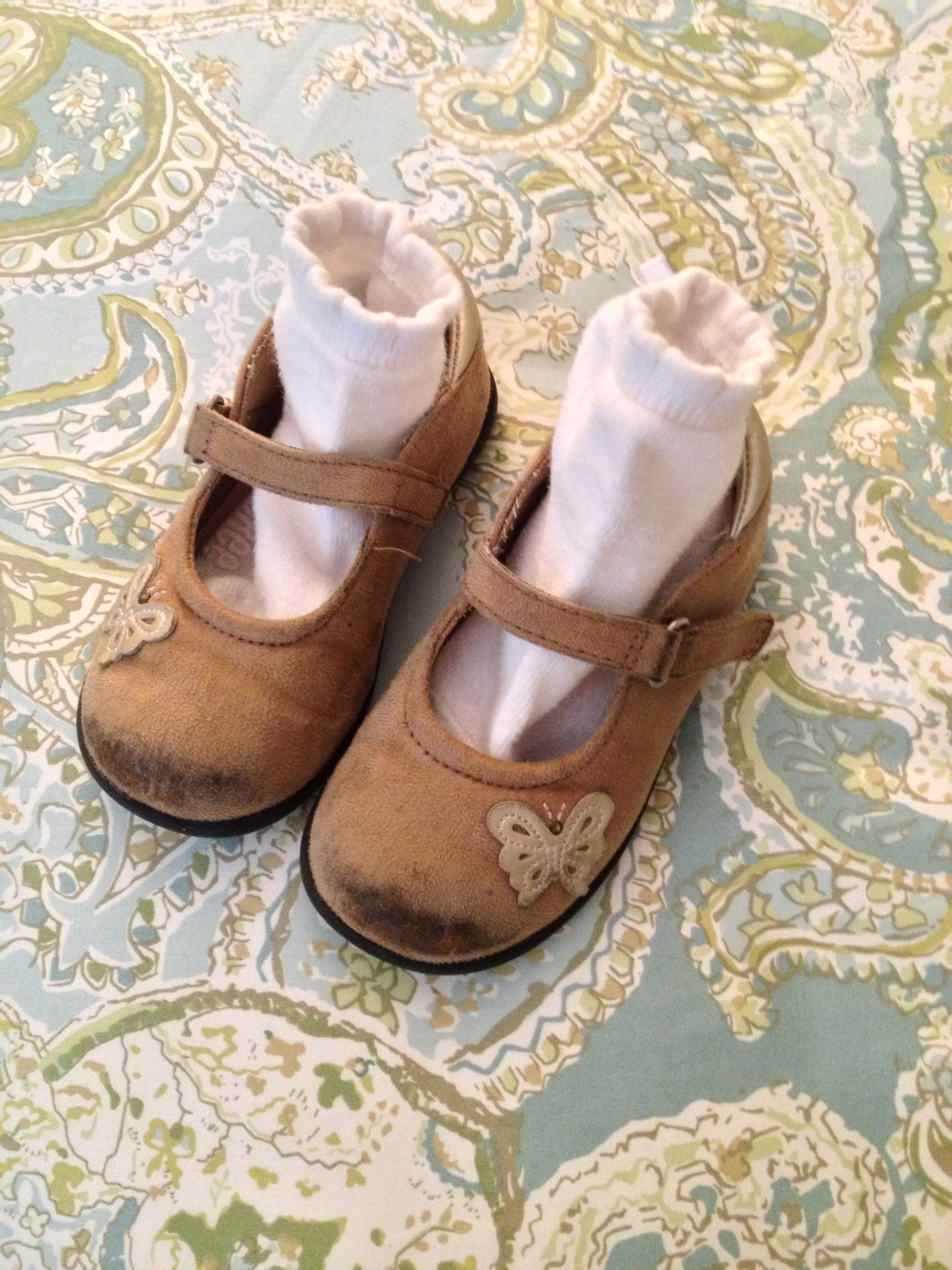 I have a guest author today, Danica’s Shoes, two small suede “Dora Mary Janes”.