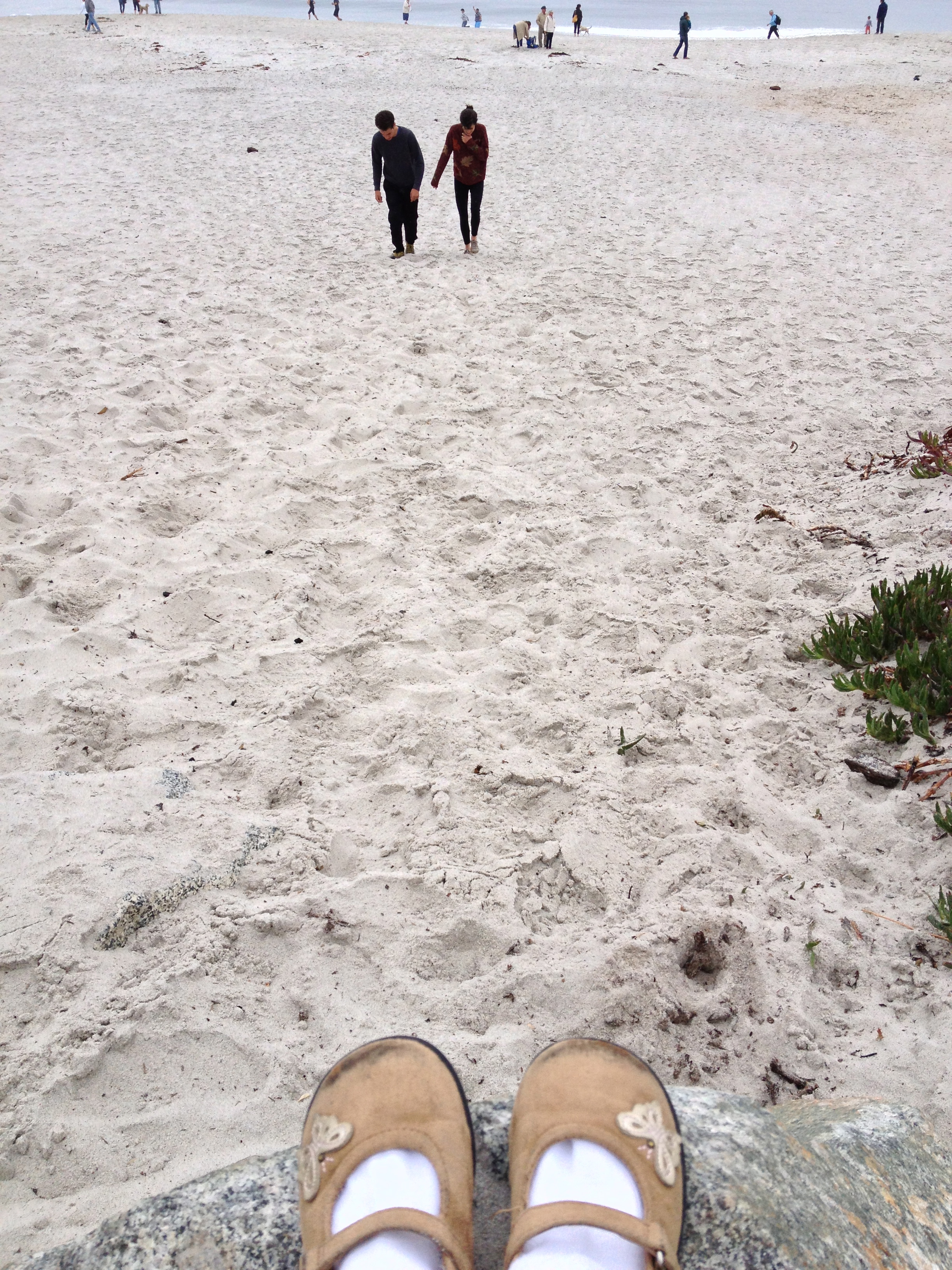 We go down to stick our toes in the foaming surf and are almost swept away. The water feels fresh and cold.