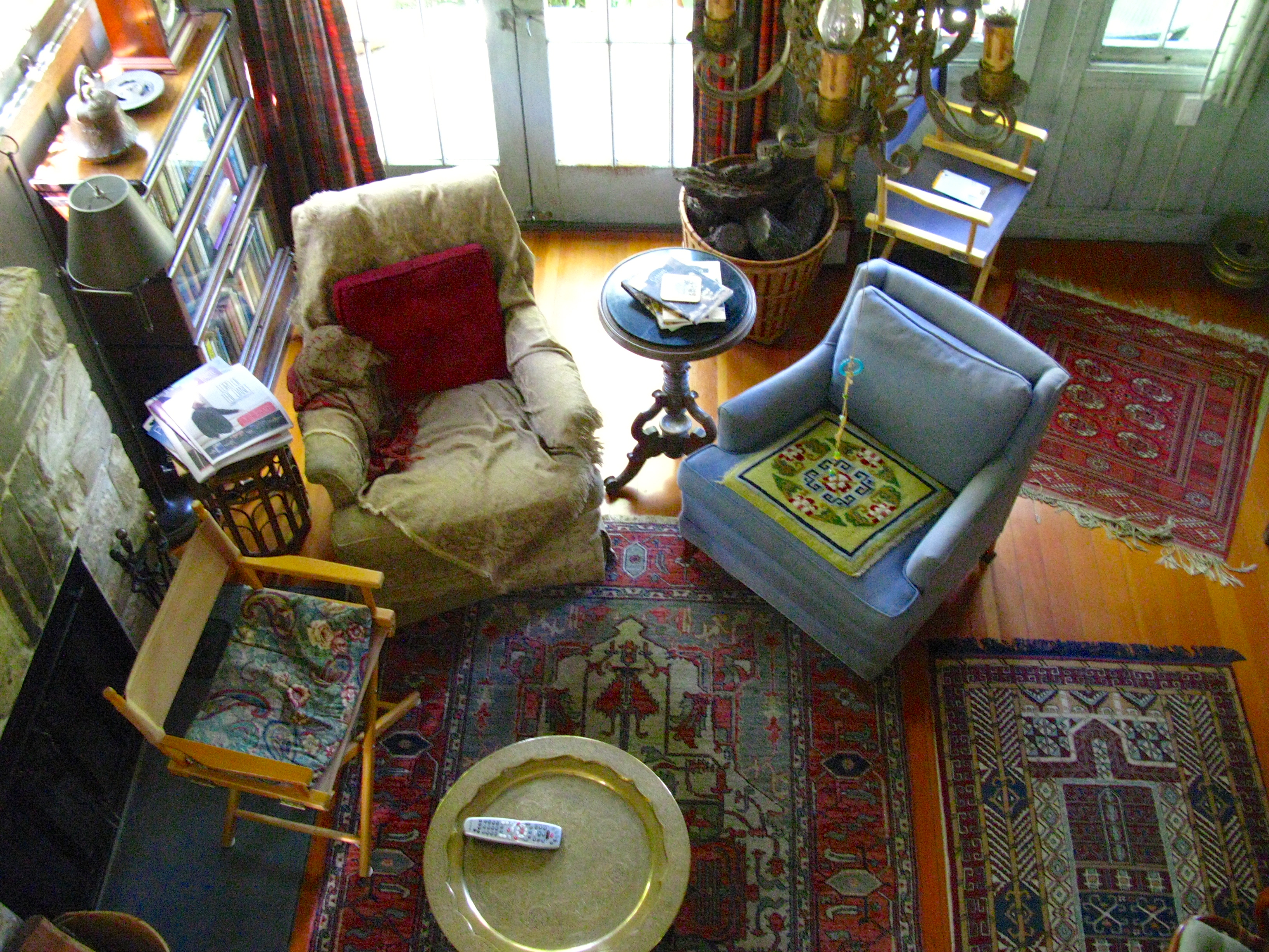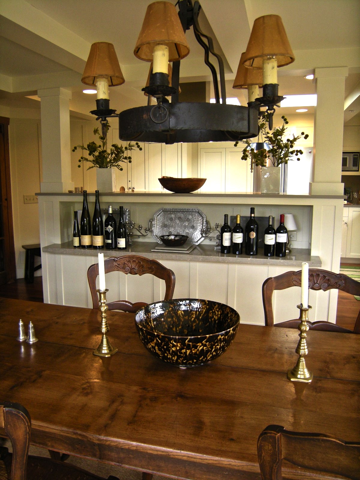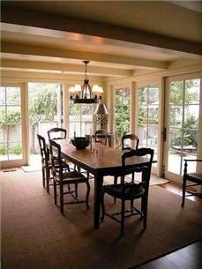 She leads me down several stairs into what is now the dining room but was a kitchen and bath before they remodeled in 1997.