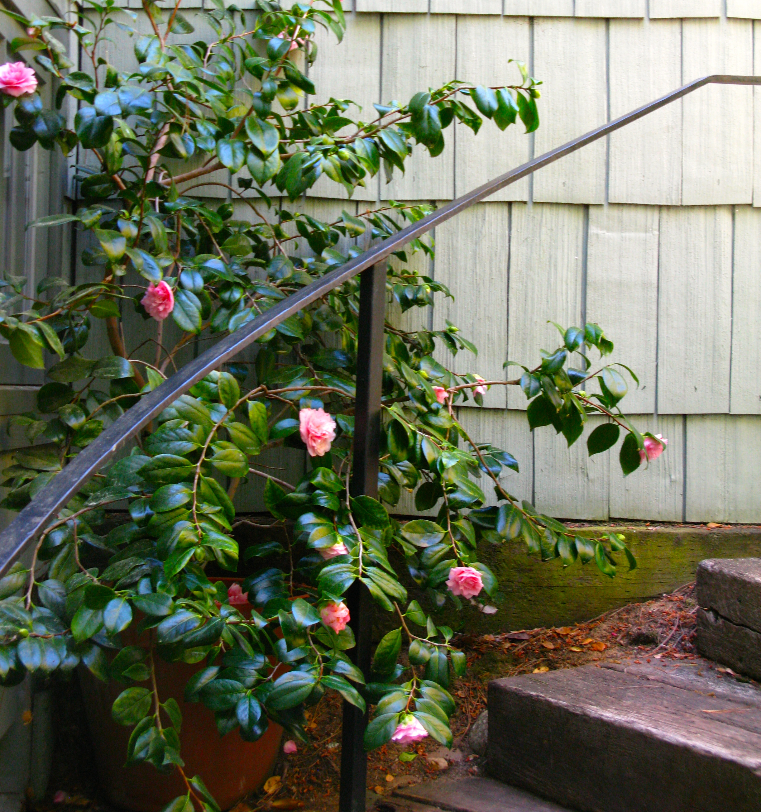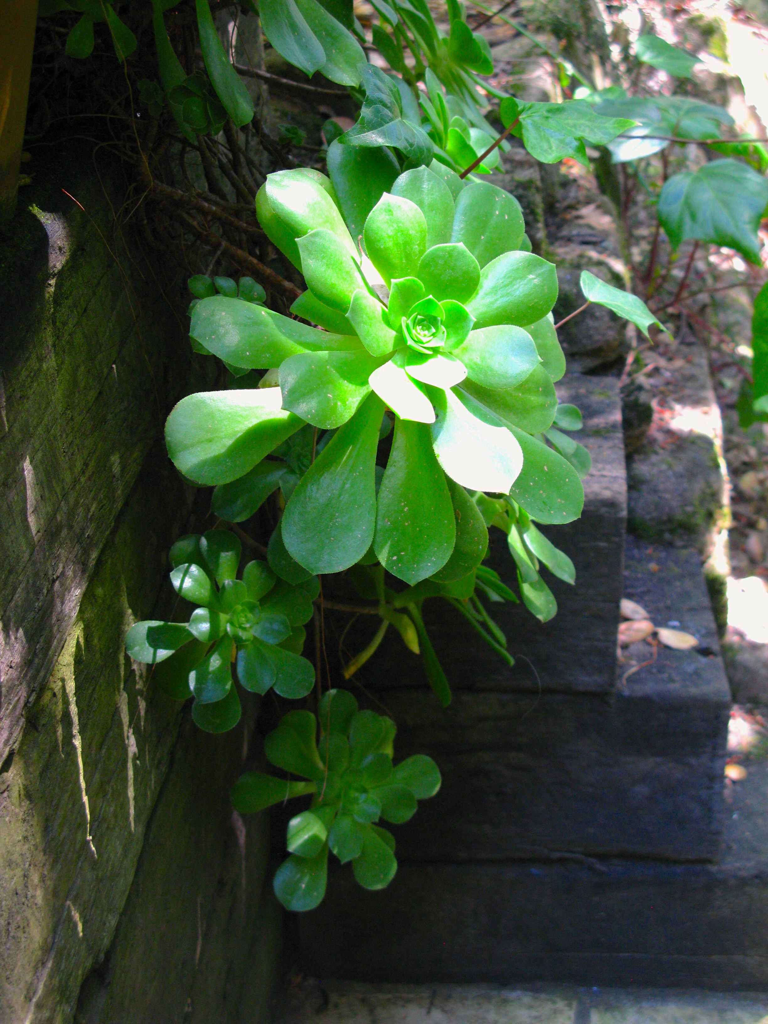 I am back a mere 2 years later and once again the Winslow house is screened by dense shrubbery. I am poking my camera through the branches when I hear a voice. The gardener is here and when I remark on the unusual combinations of plant material, he decides to show me around and tell me a story.