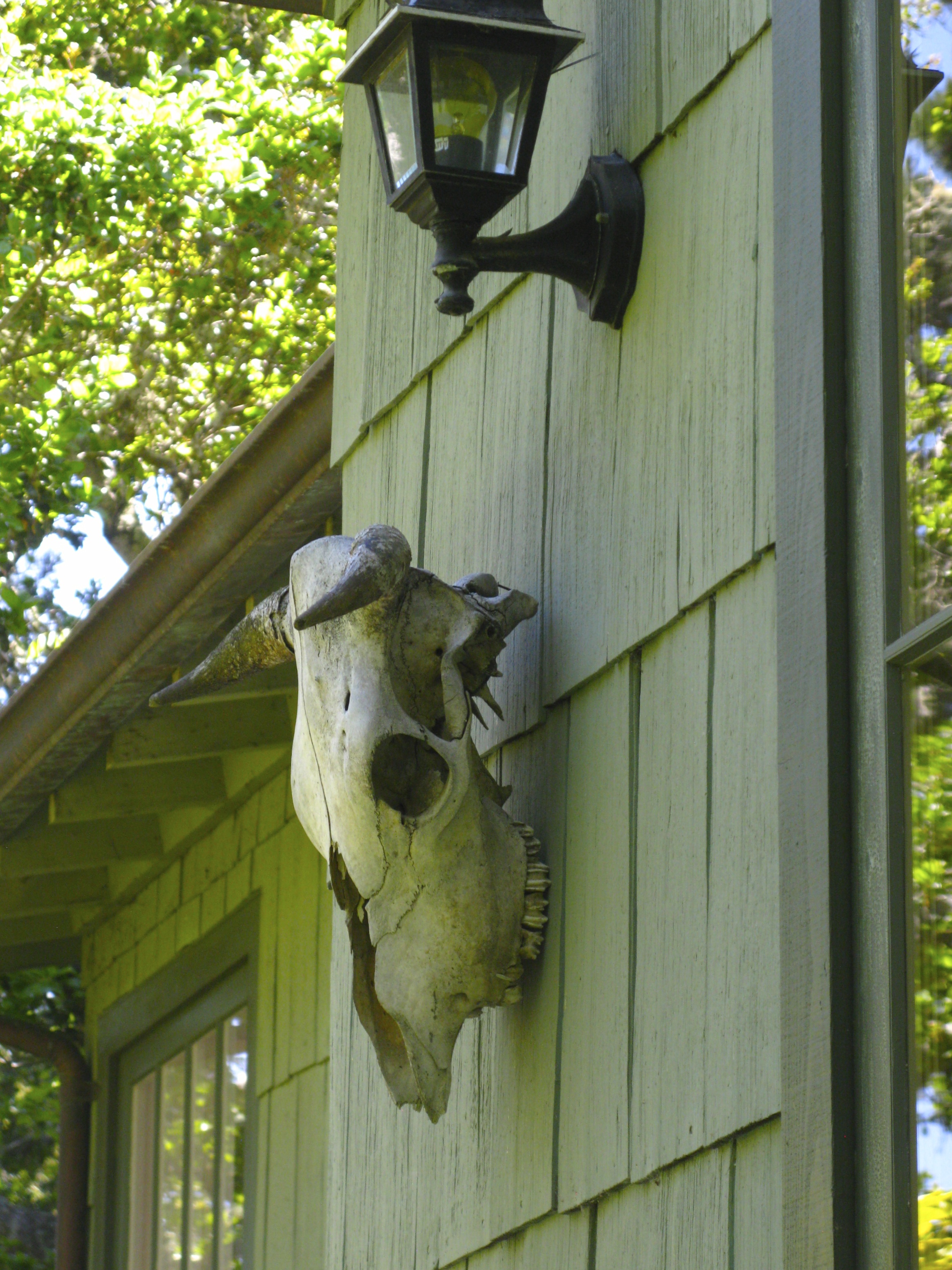 Yes there are those offending skylights on either side of the “stucco-clad… Facade with its patchwork of Carmel stone pieces along its edges” that Kent Seavey describes. Mercy.