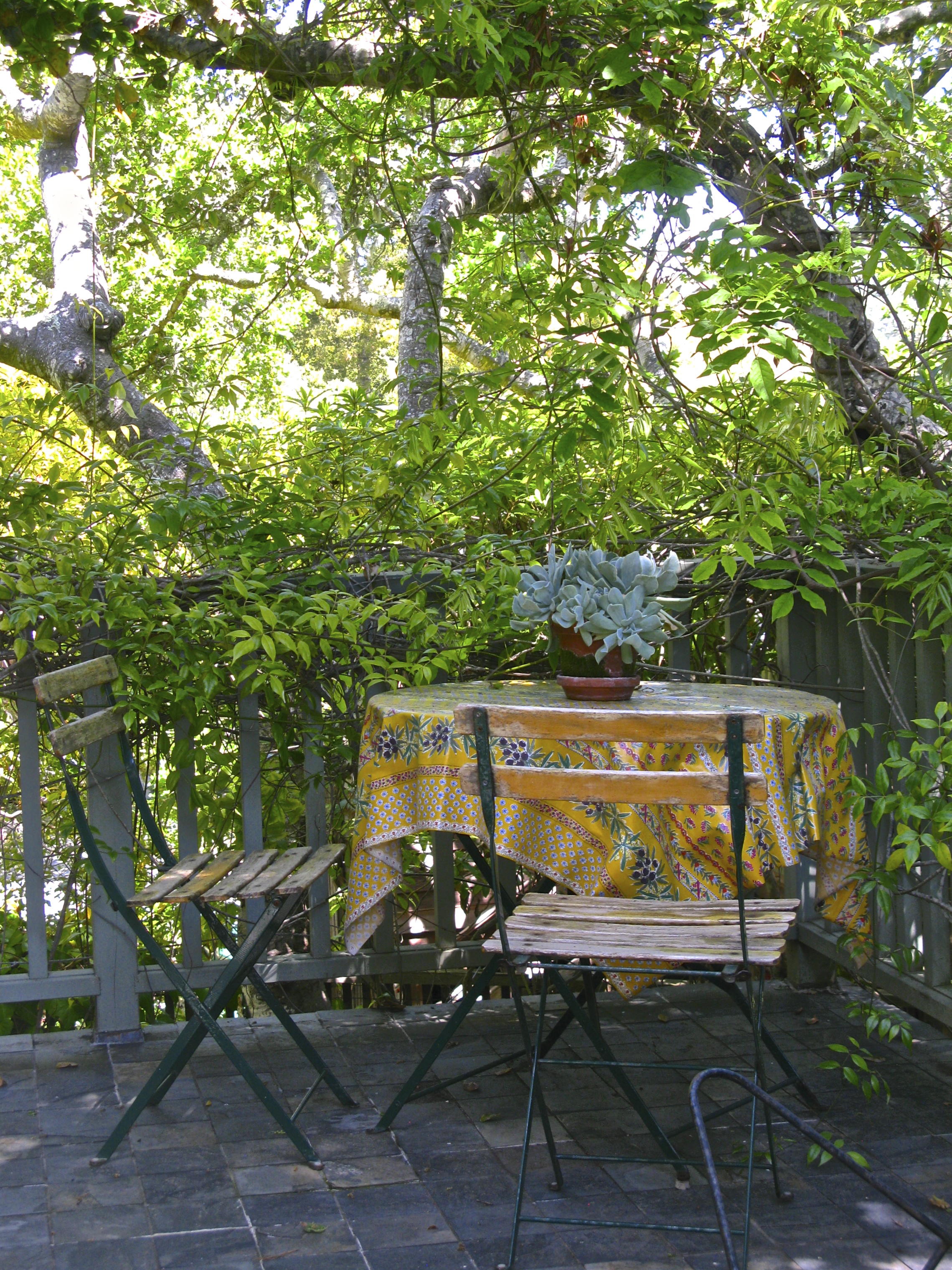 It is a sunny, warm day but cool in this sun-dappled spot.