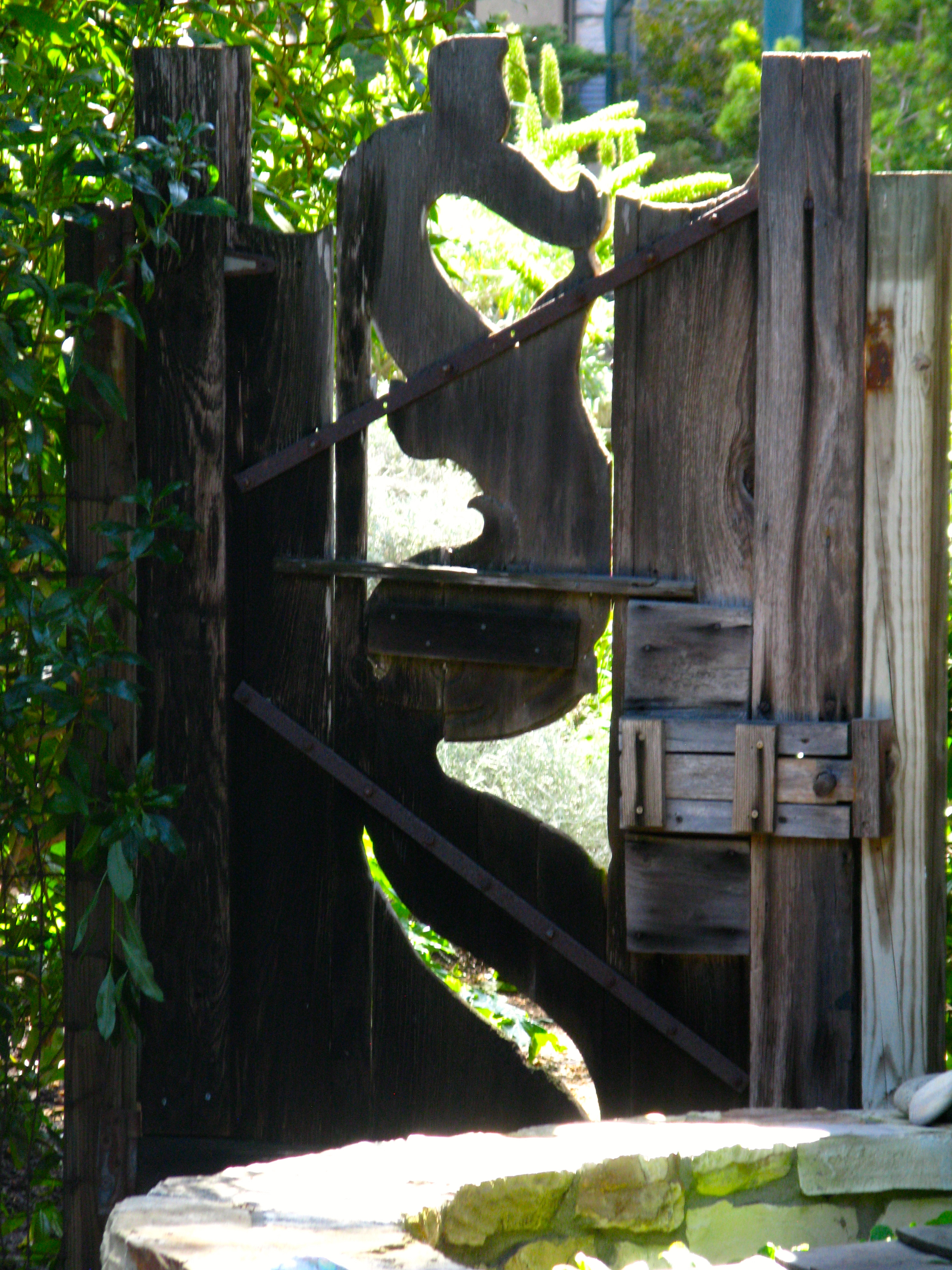 I round the corner and park on the north side of this “one-story, wood-framed California Adobe vernacular residence…The exterior wall cladding is a combination of textured cement stucco and vertical board-and-batten”. Kent Seavey